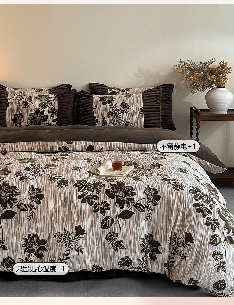 子曰 2025新款浮雕轻法式复古ins小清新风雕花牛奶绒四件套 醉蝴蝶-咖