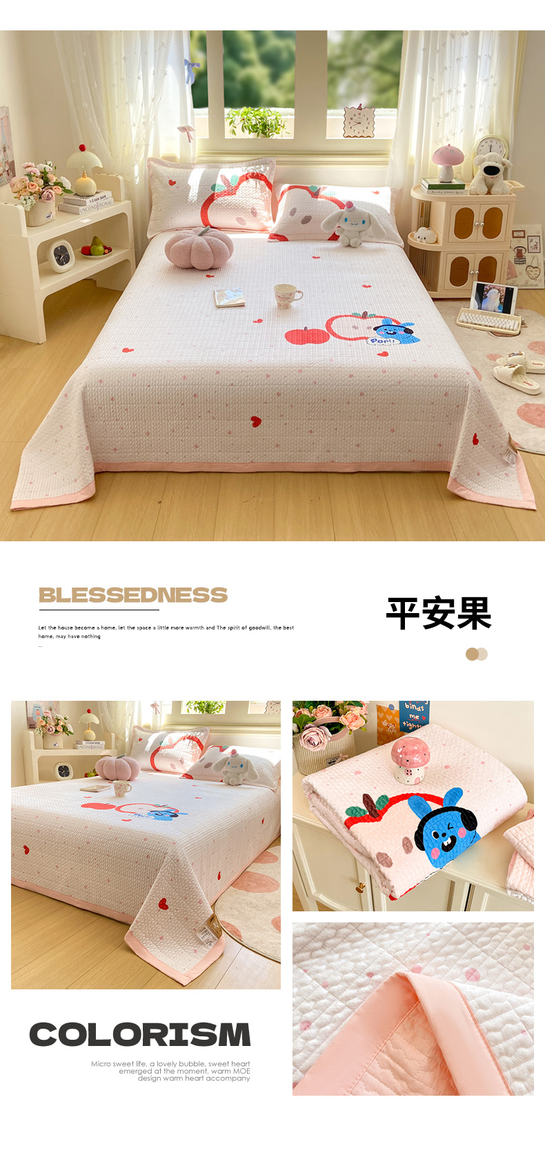 (总)芷凡家纺 2024新款A类水洗云朵棉绗缝夹棉单床盖,爱心猫咪,集美花语,兰兰兔,满心爱恋,清新粉桃,淑女兔,小熊联谊,熊熊告白,萱草花梦,熏衣浪漫,叶语阑珊,依美莎