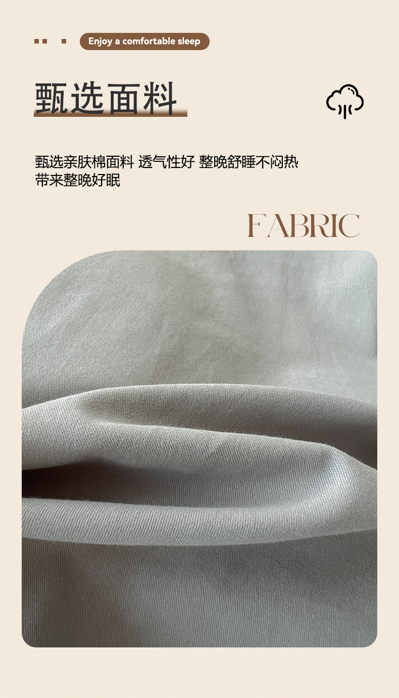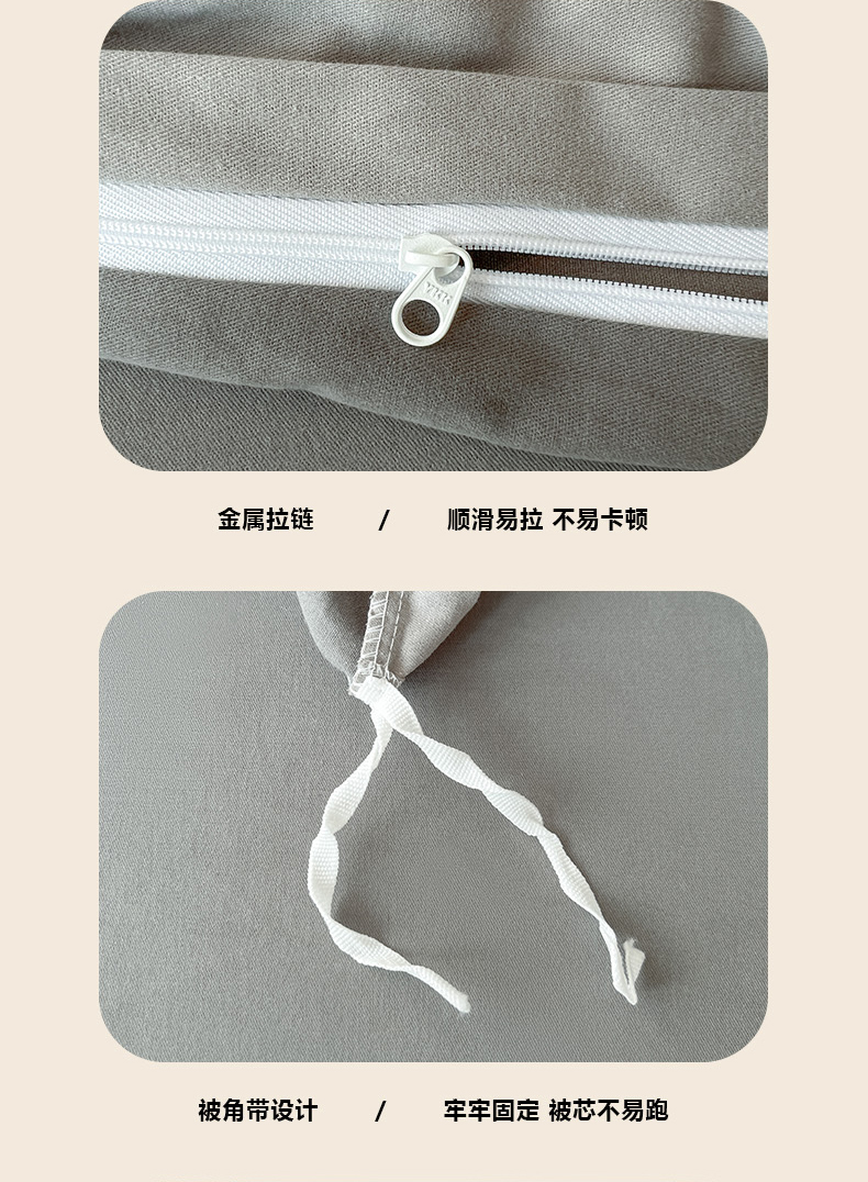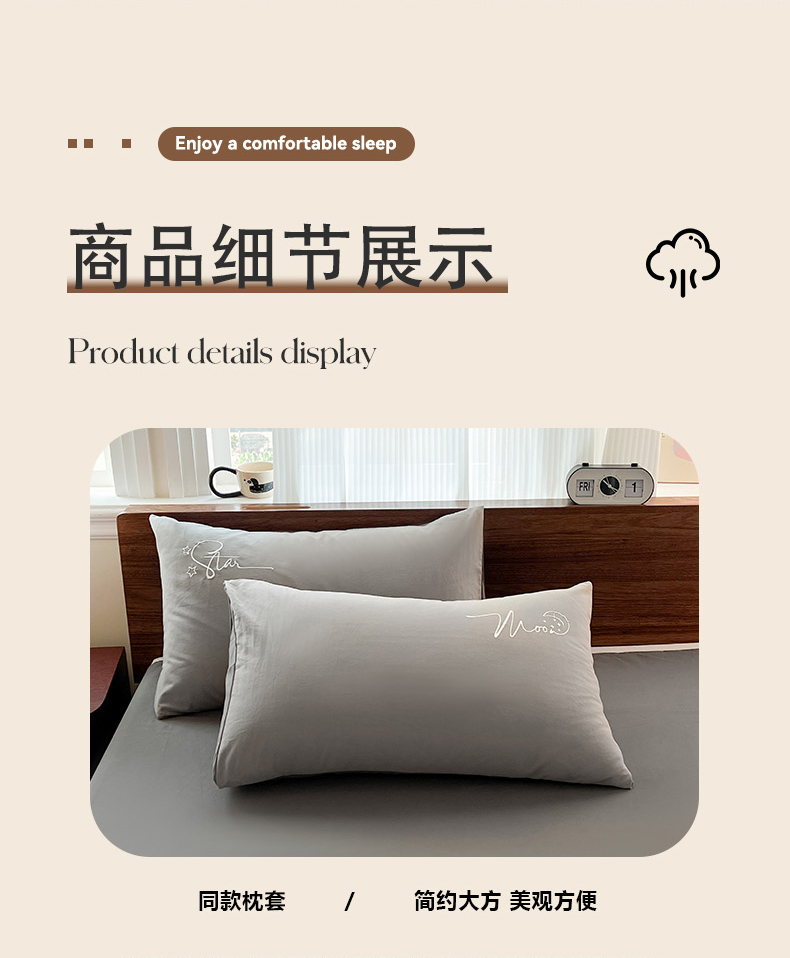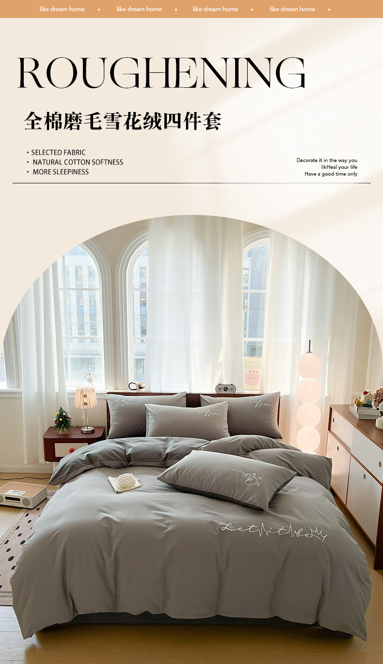商品名称:有点武功 2025冬季新款百分百全棉磨毛纯色双拼刺绣四件套小清新风 浅灰