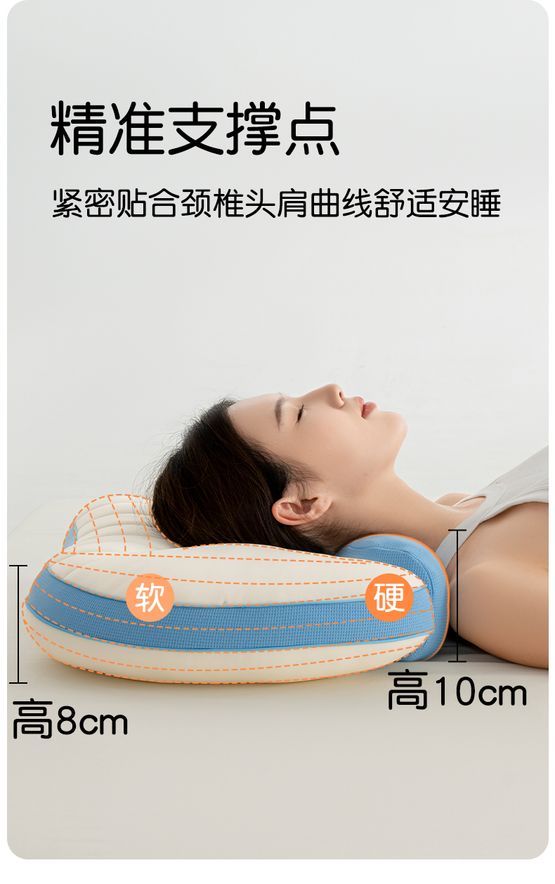 38x58cm 圆柱处高10cm 枕面高8cm左右 睡下4-6cm