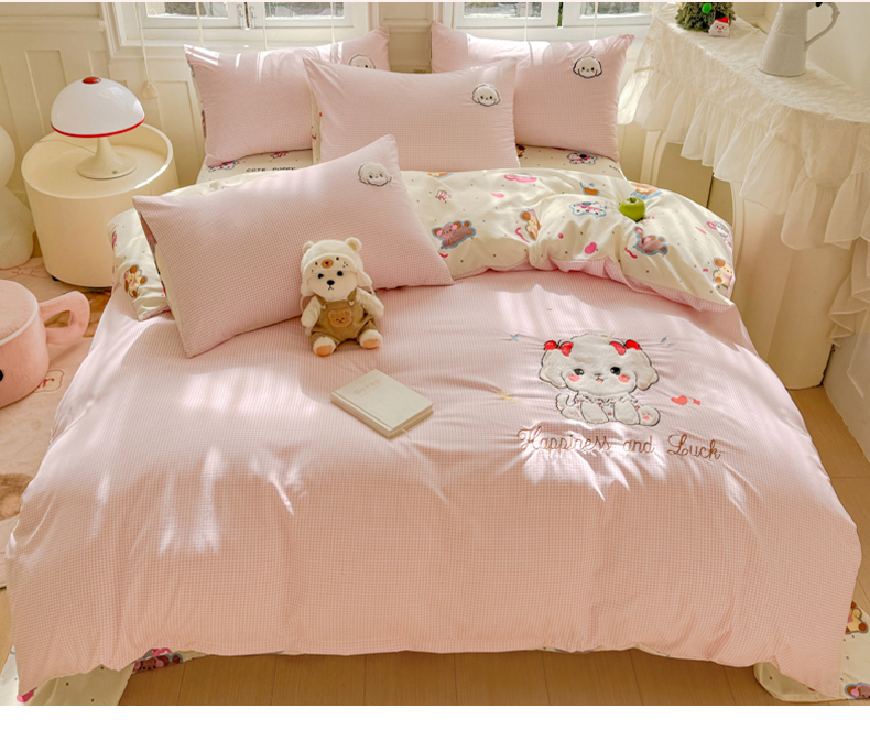 (总)悦兴家纺 2025新款A类水洗棉治愈萌犬系列四件套(含买家秀),粉格蝴蝶狗,蓝格多duo狗狗,绿格学院狗狗,奶粉蝴蝶狗,奶蓝多duo狗狗,奶绿学院狗狗