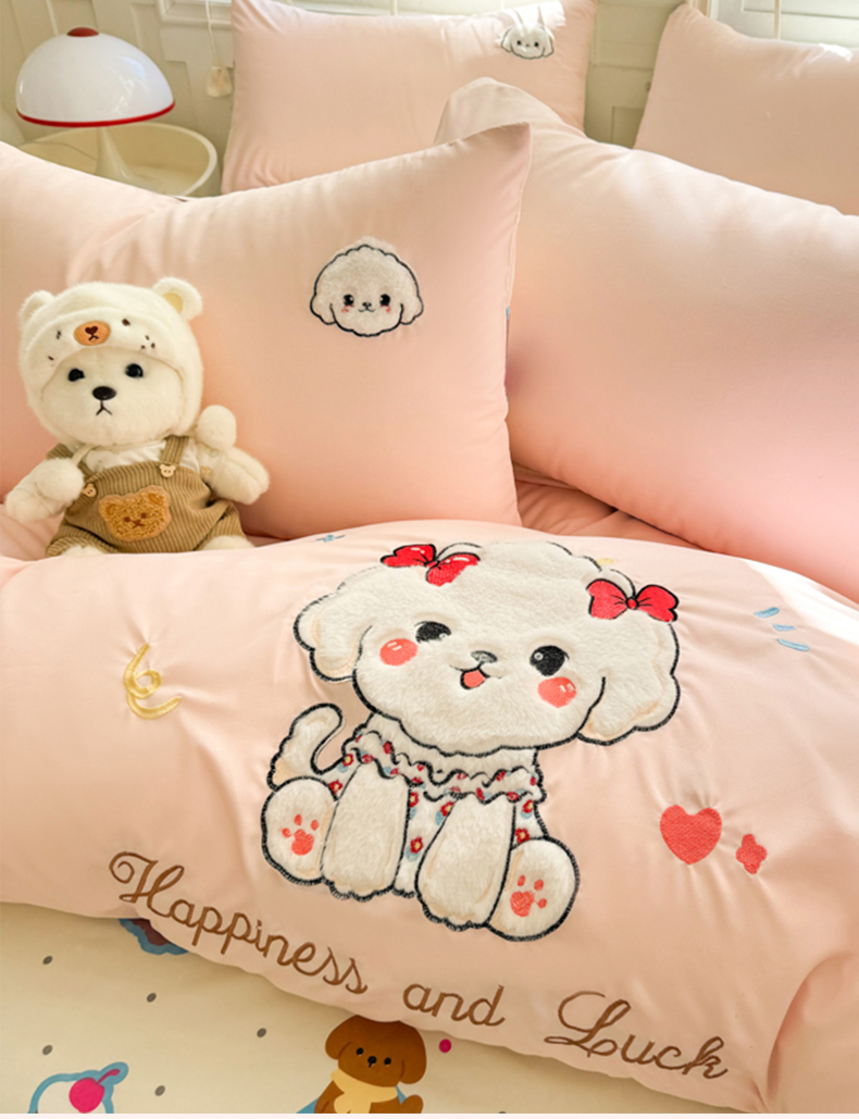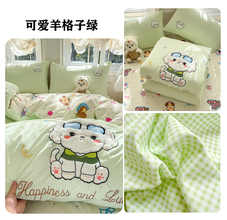 商品名称:悦兴家纺 2025新款A类水洗棉治愈萌犬系列四件套(含买家秀) 奶绿学院狗狗