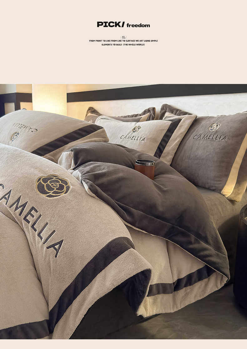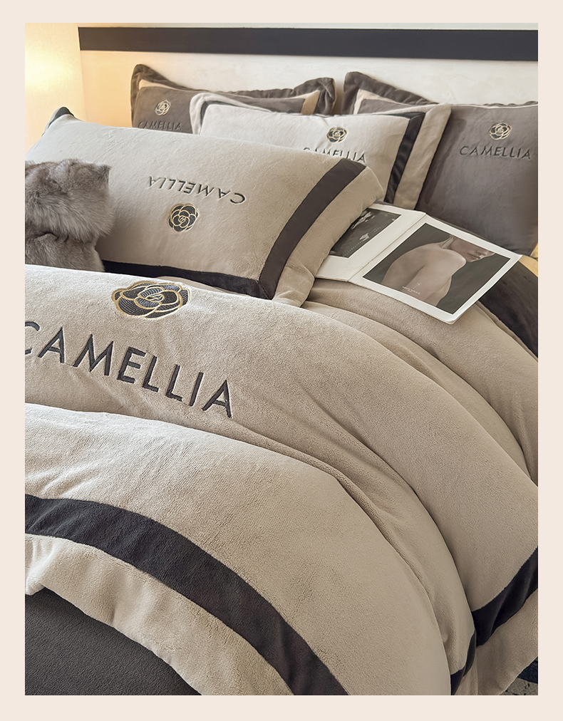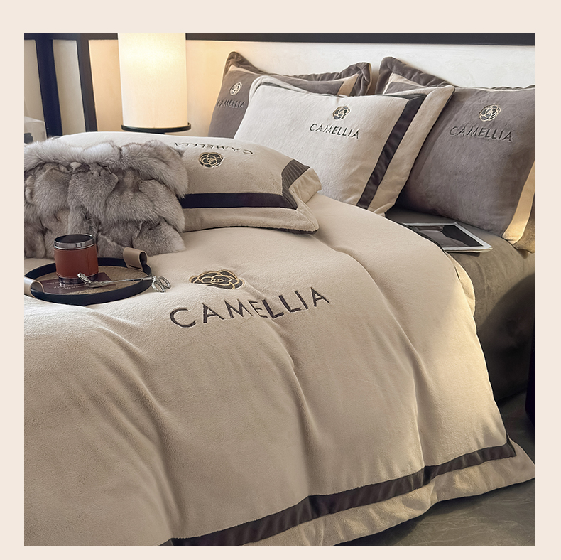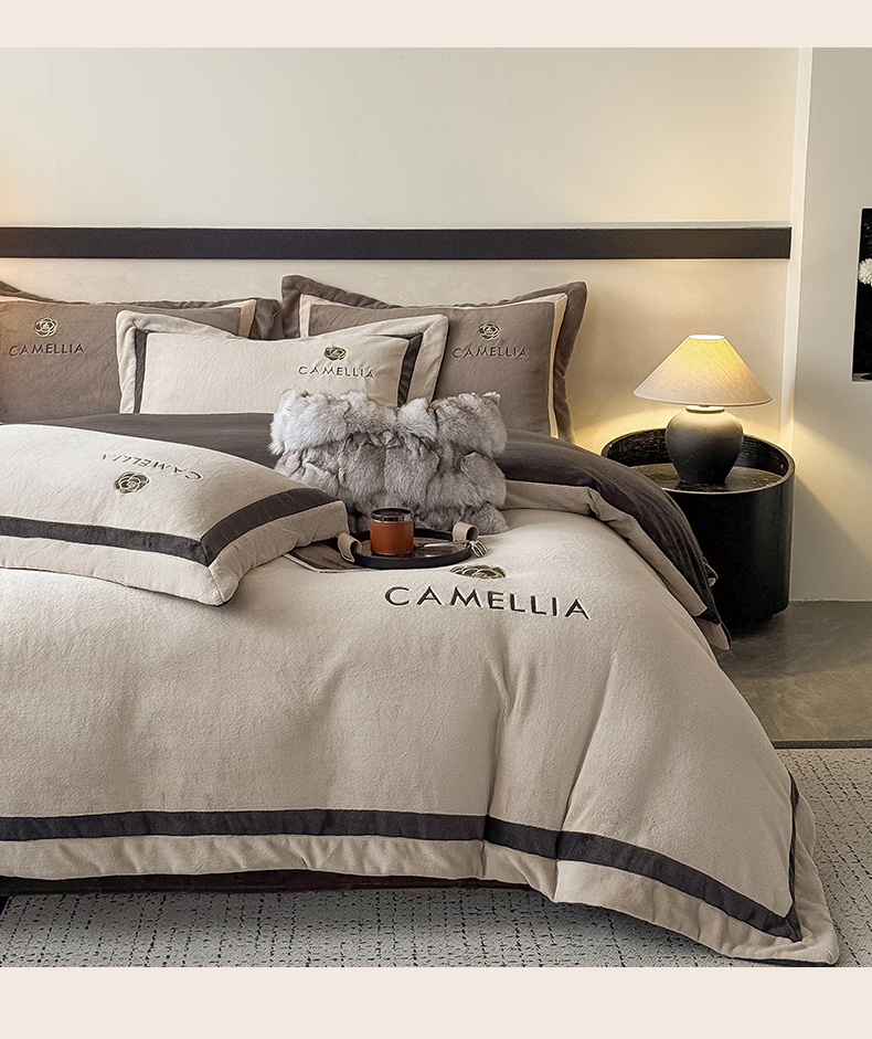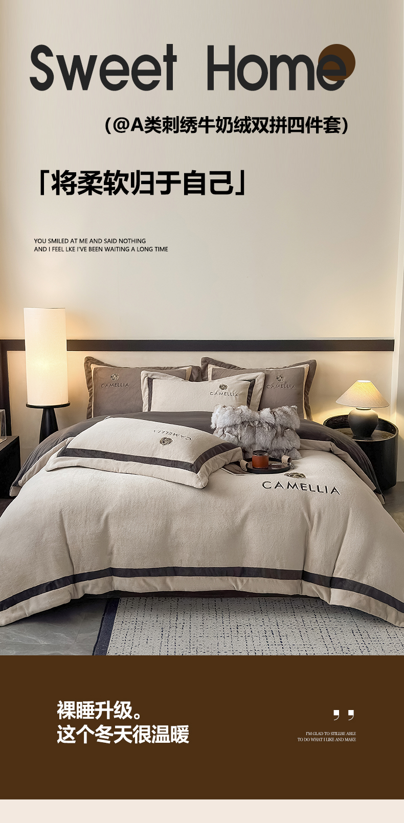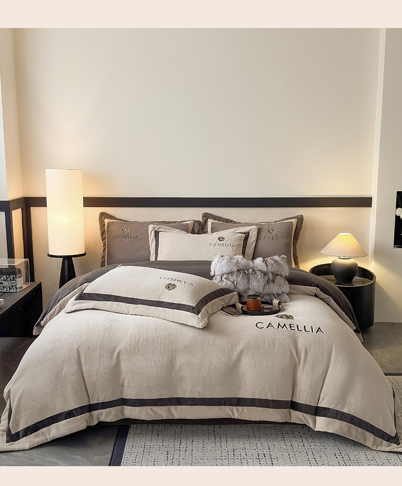 (总)水云缦 2025新款双拼角牛奶绒绣花四件套系列,浅灰-茶褐色,浅卡其-褐色,奶白-褐色,樱粉-茶褐色,褐色-浅卡其