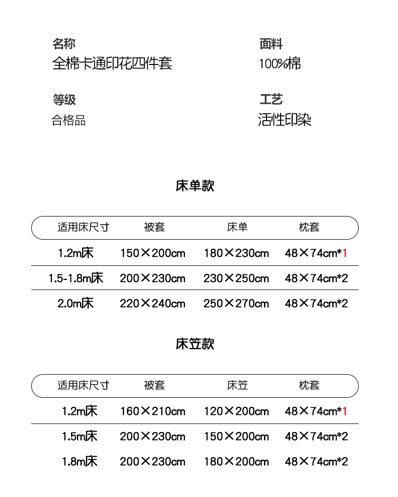 1.8m床笠款四件套 | ¥120.00 |