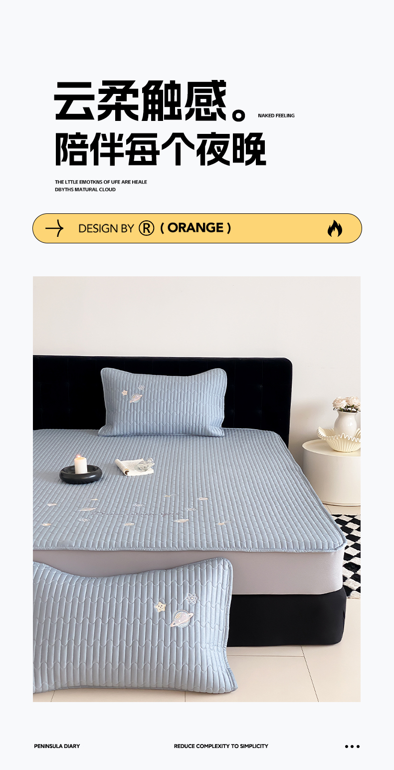 商品名称:咏绒家纺工厂店 2025新品50S双股全棉长绒棉刺绣绗缝夹棉床笠床垫保护罩三件套 奶茶咖