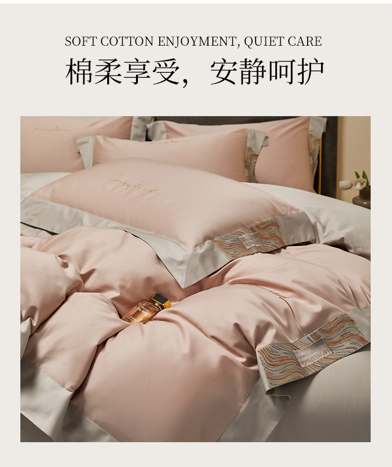 当前位置: 91家纺网 > 商品网购 > 床品套件 > 四件套 > 长绒棉四件套 > 咏绒家纺工厂店 2025新款100支澳棉纯棉CR工艺极简轻奢刺绣四件套-极光系列 极光-胭脂红