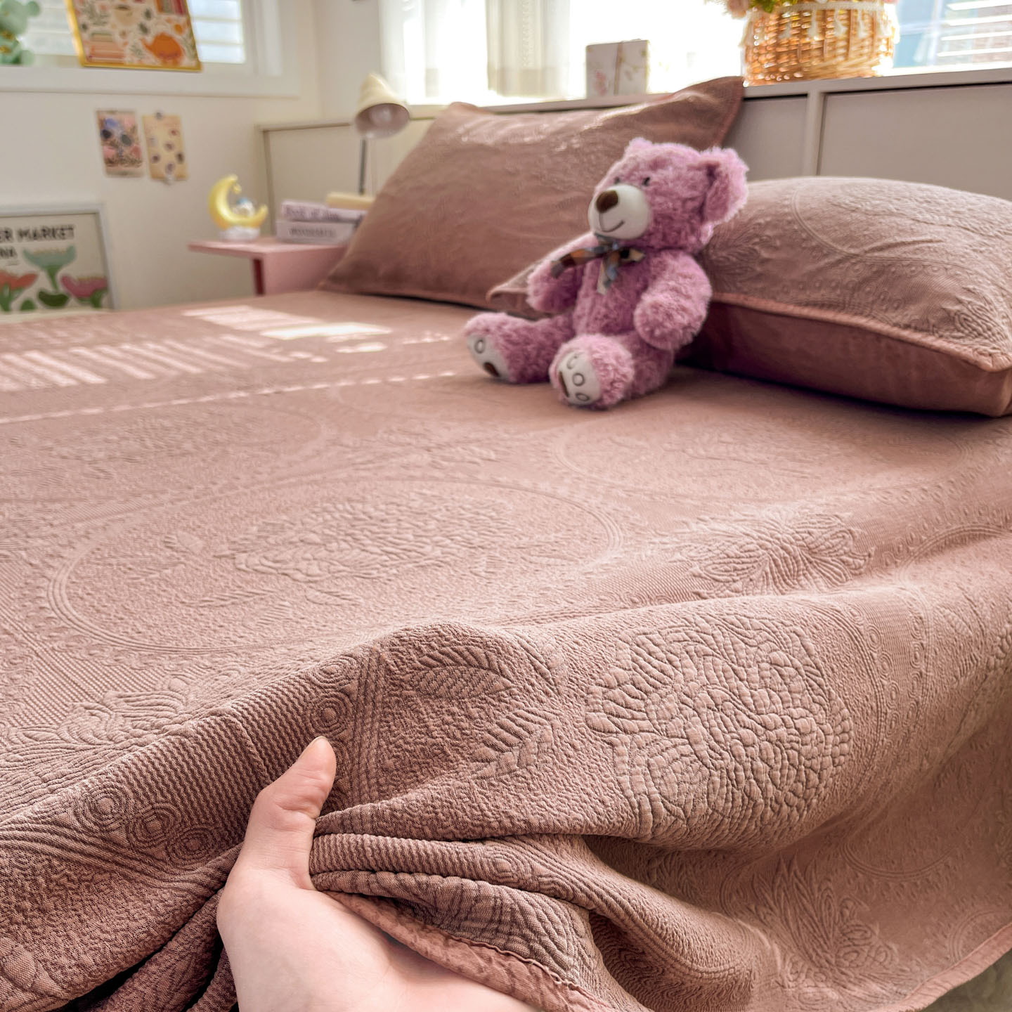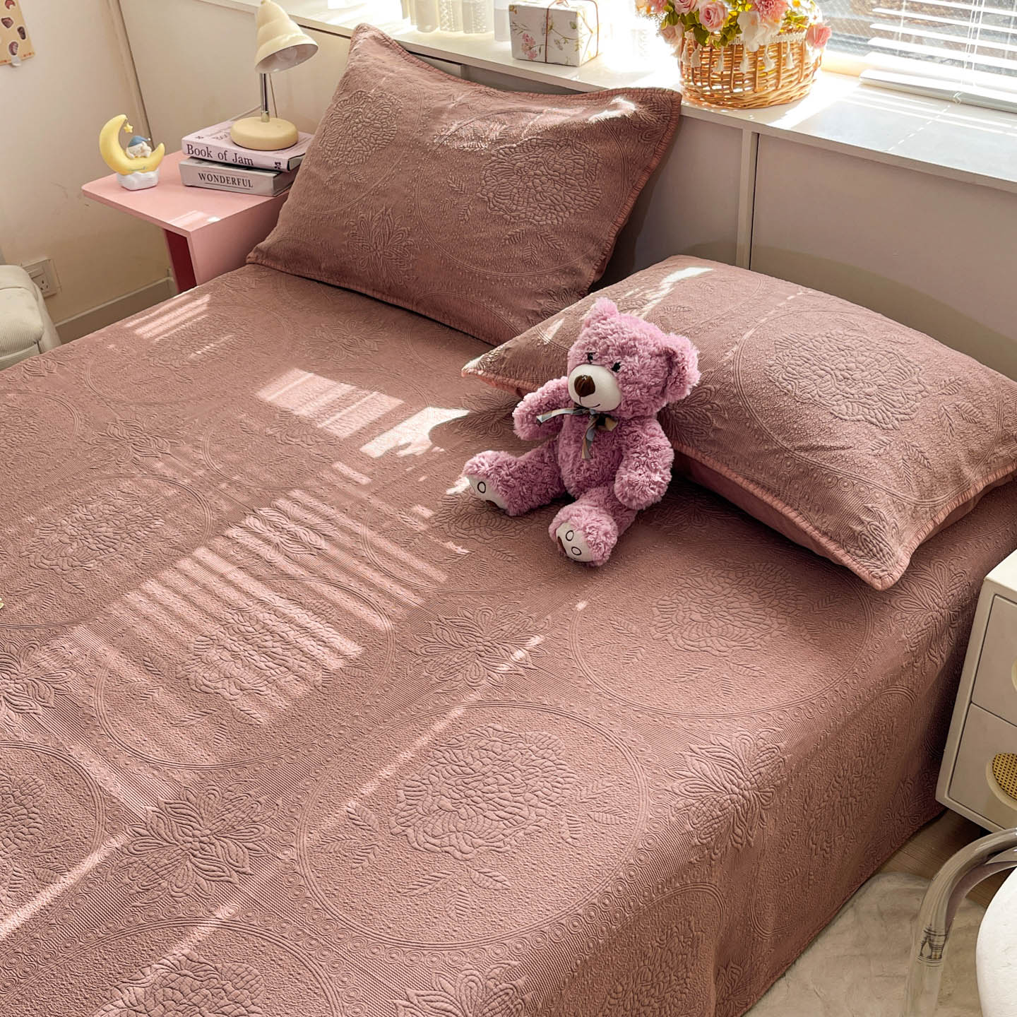 (总)源舜家纺 2025新款牛奶婴儿绒米粒绣韩系花边床盖三件套,婴儿草绿,婴儿豆沙,婴儿粉,婴儿灰,婴儿灰蓝,婴儿蓝,婴儿深绿,婴儿紫