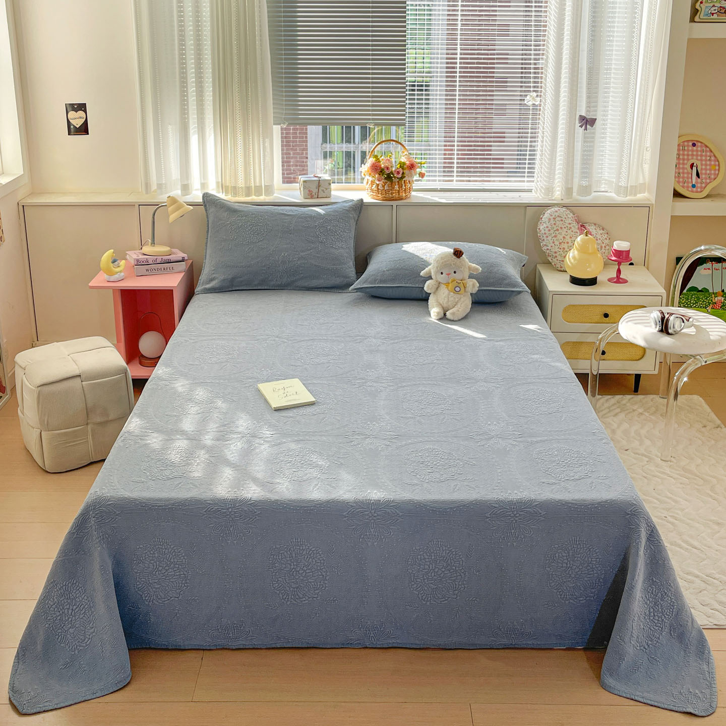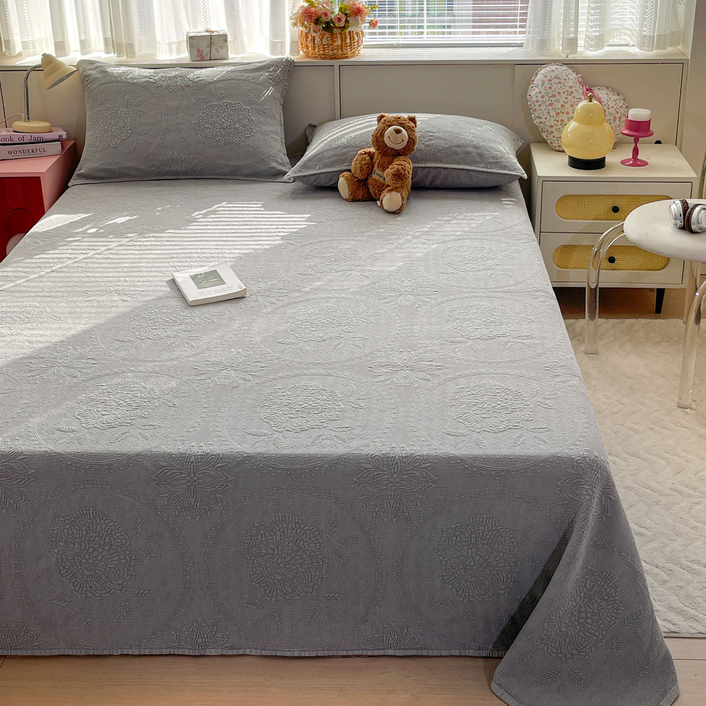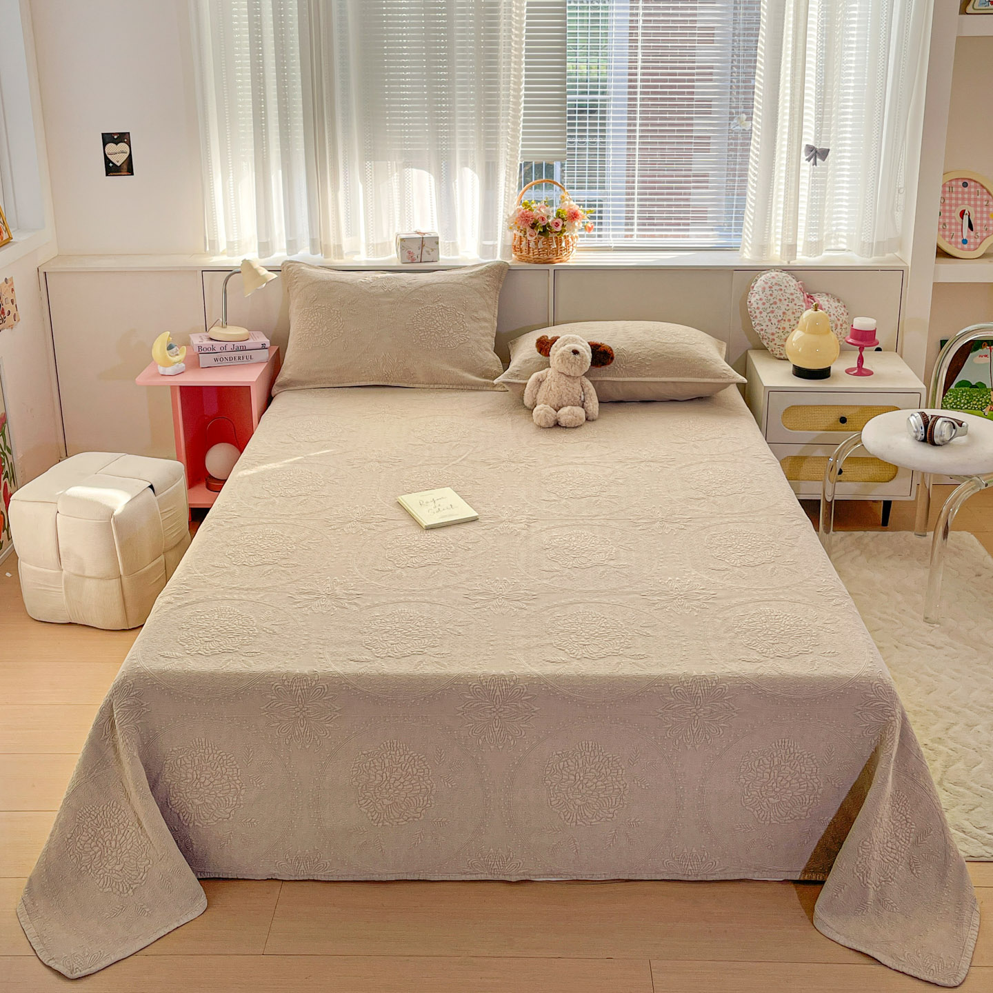 (总)源舜家纺 2026新款天丝棉麻莱赛尔莫代尔天丝棉米粒绣床盖三件套,米粒-绿,米粒-灰,米粒-米,米粒-蓝,米粒-粉,米粒-豆沙