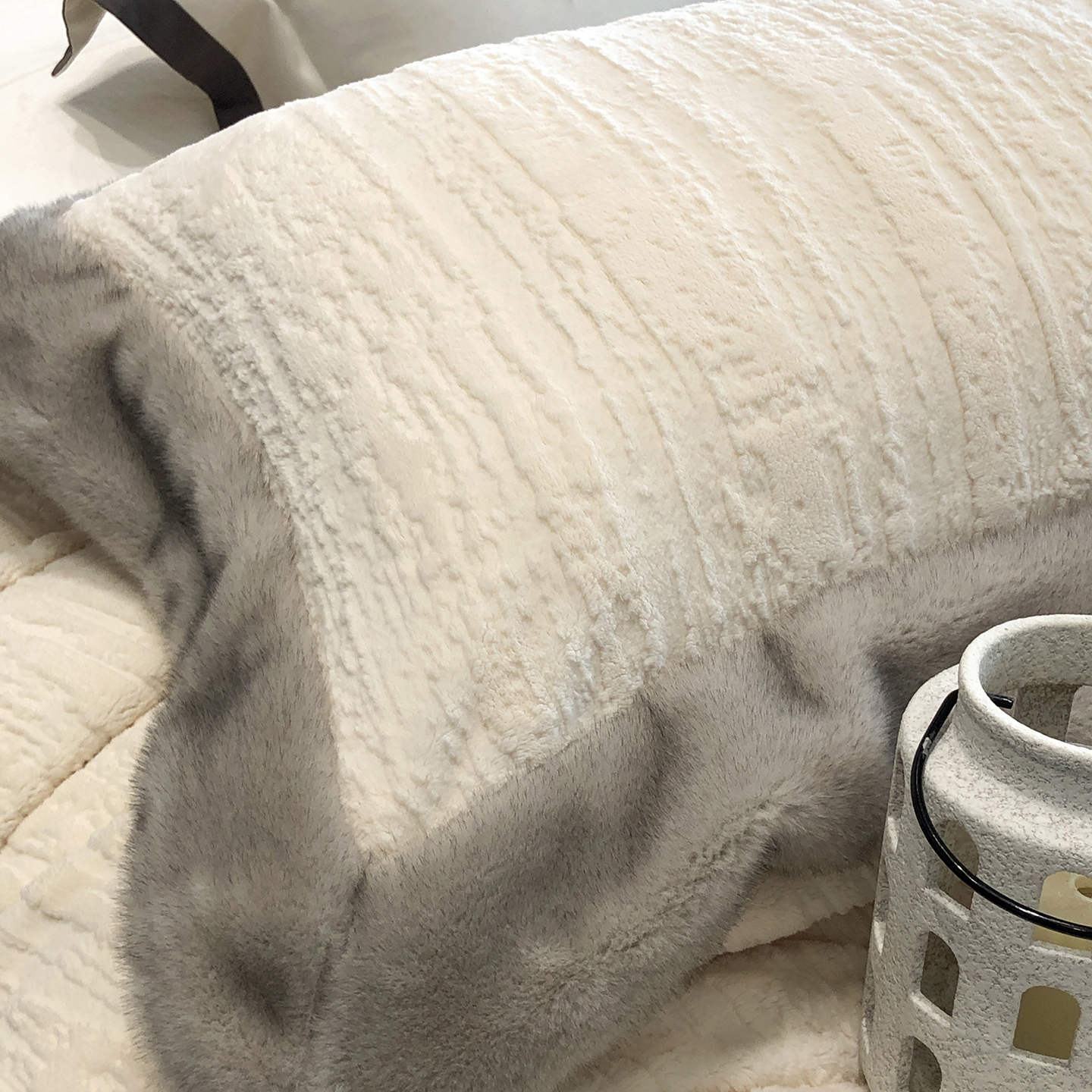 商品名称:佳汐蓝家纺 2025新款高奢暖绒立体浮雕熊极绒系列四件套 融冬北极狐-薄暮灰