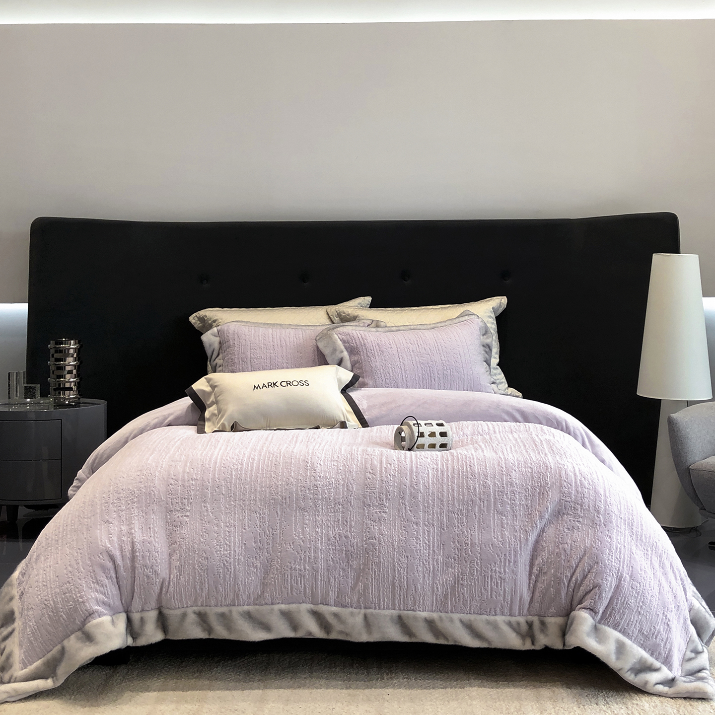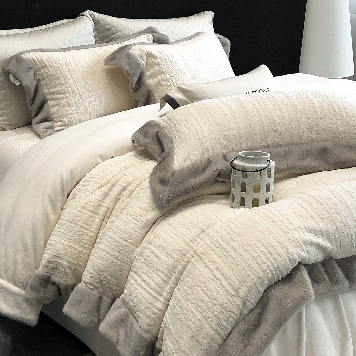 佳汐蓝家纺 2025新款高奢暖绒立体浮雕熊极绒系列四件套 融冬北极狐-薄暮灰