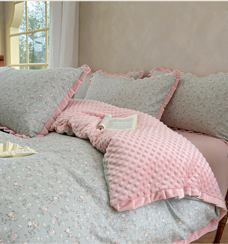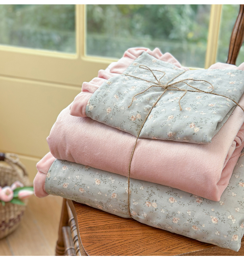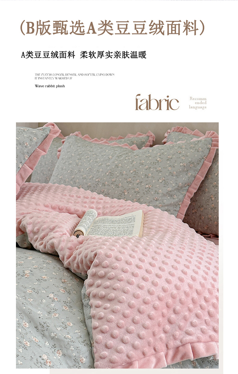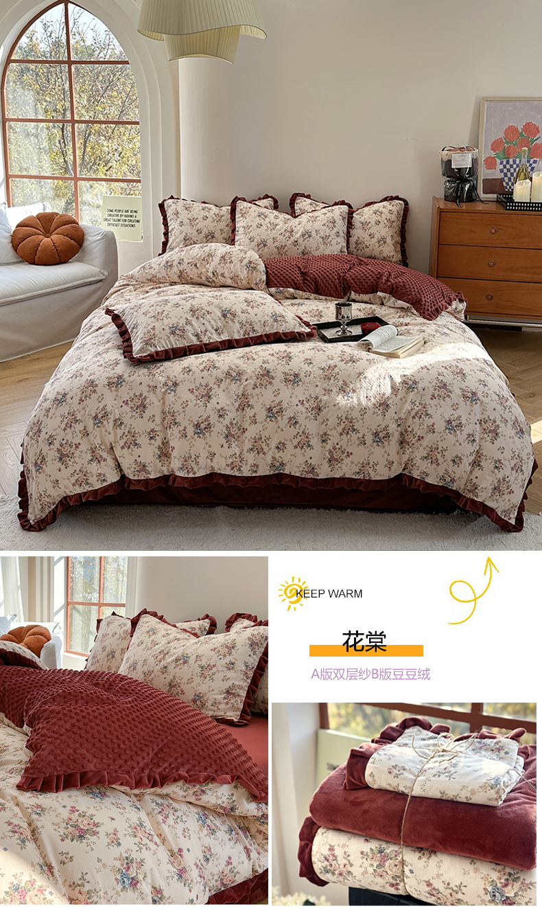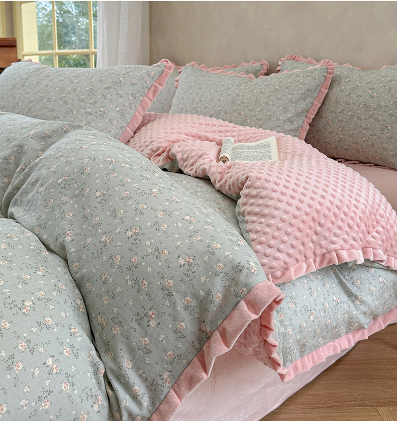 当前位置: 91家纺网 > 商品网购 > 床品套件 > 四件套 > 全棉普通四件套 > 麦伦家居 2025多功能床品全棉纯棉A类有氧双层纱+豆豆绒四件套荷叶边系列 椿野