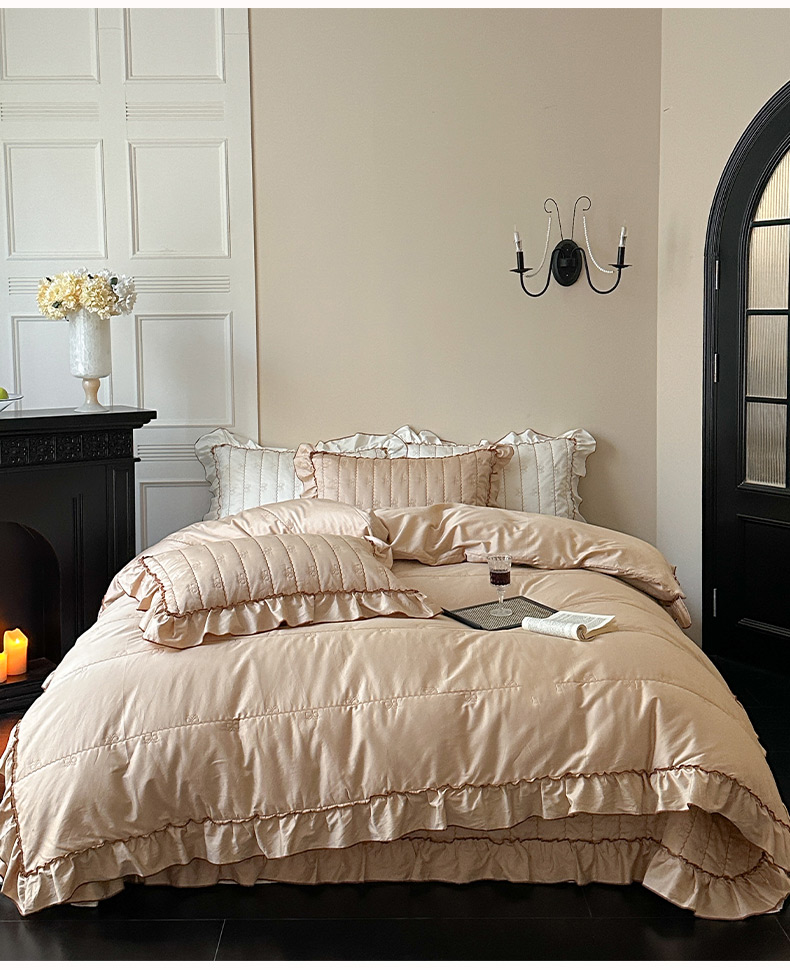 (总)琳可家居 2026新款60S长绒棉花边床盖A类双面全棉高温水洗-蝶恋系列,蝶恋-暖白,蝶恋-卡其,蝶恋-雾粉,组合