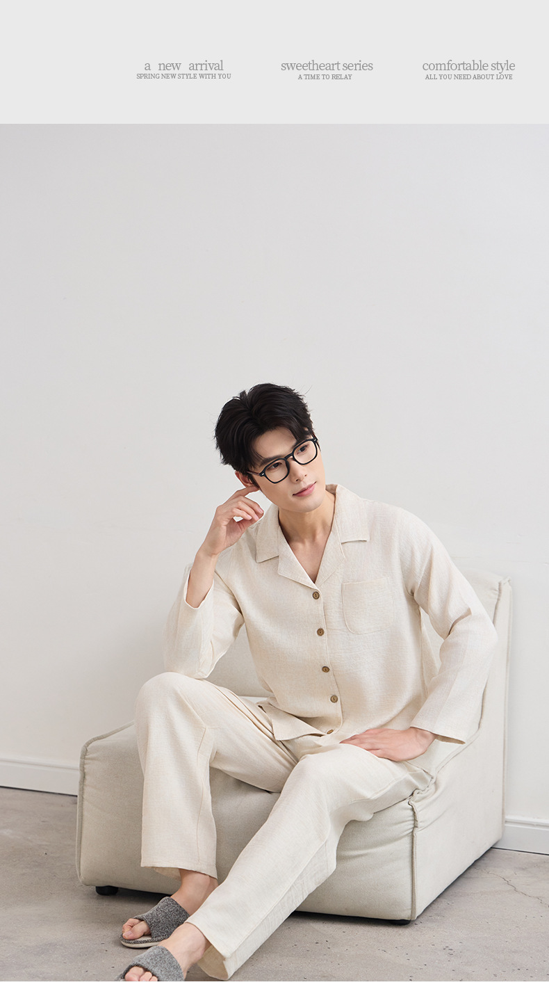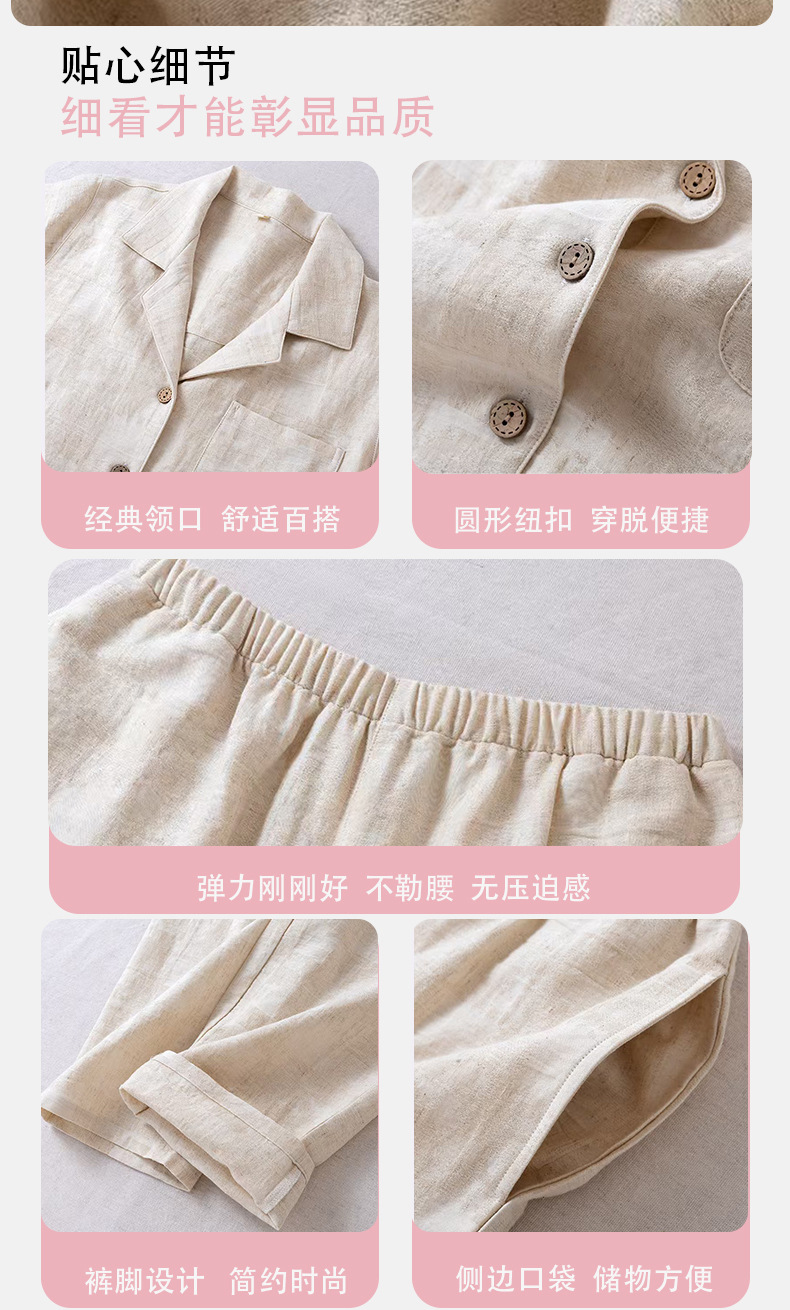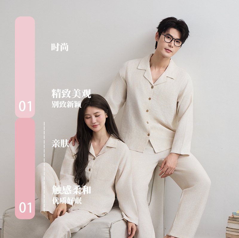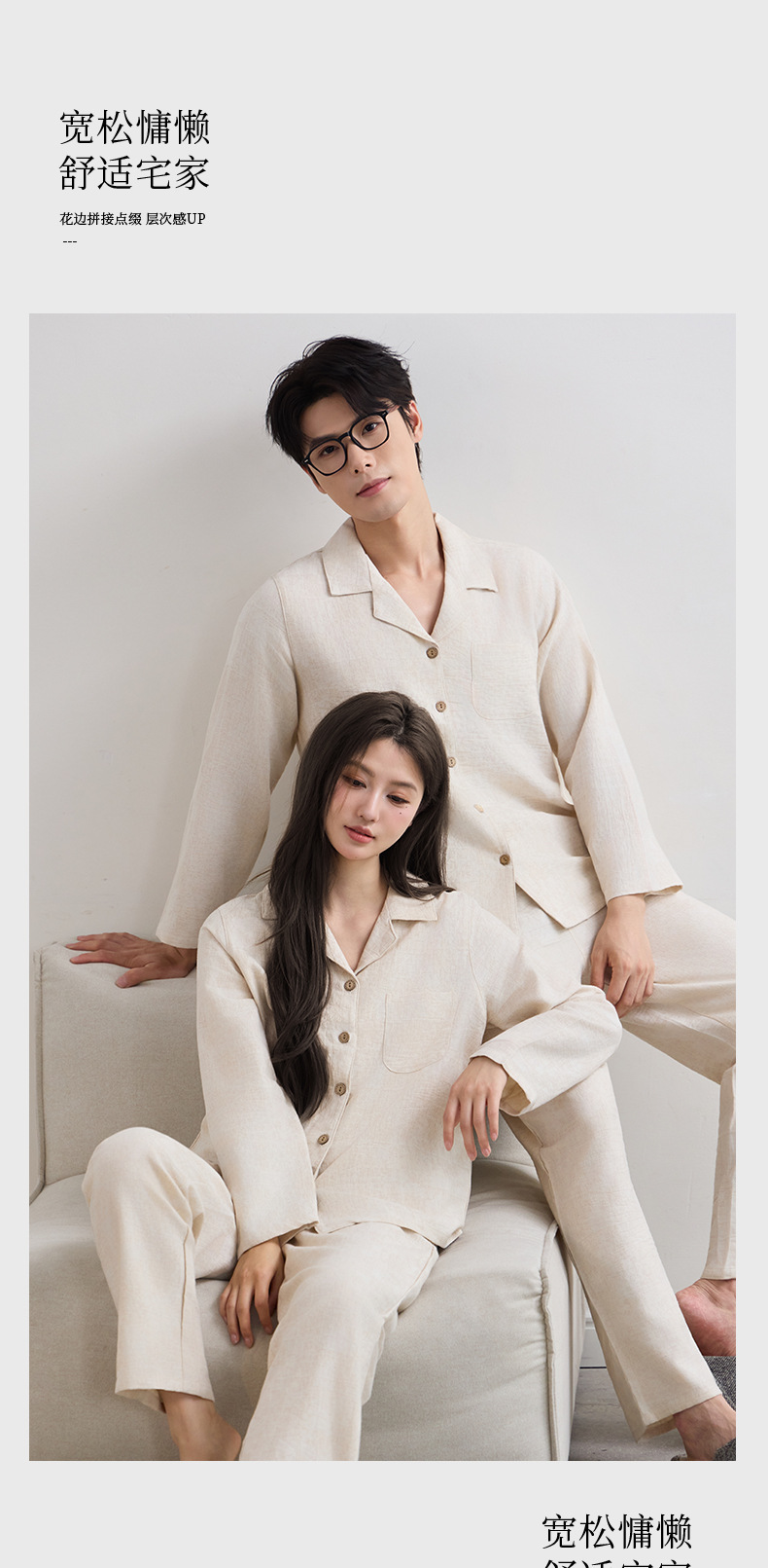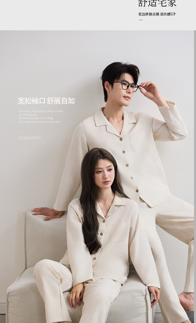 商品名称:(总)洛兰沙家居馆 2025新款简约纯色棉麻睡衣情侣款春秋夏季薄款男女士家居服套装可外穿长袖