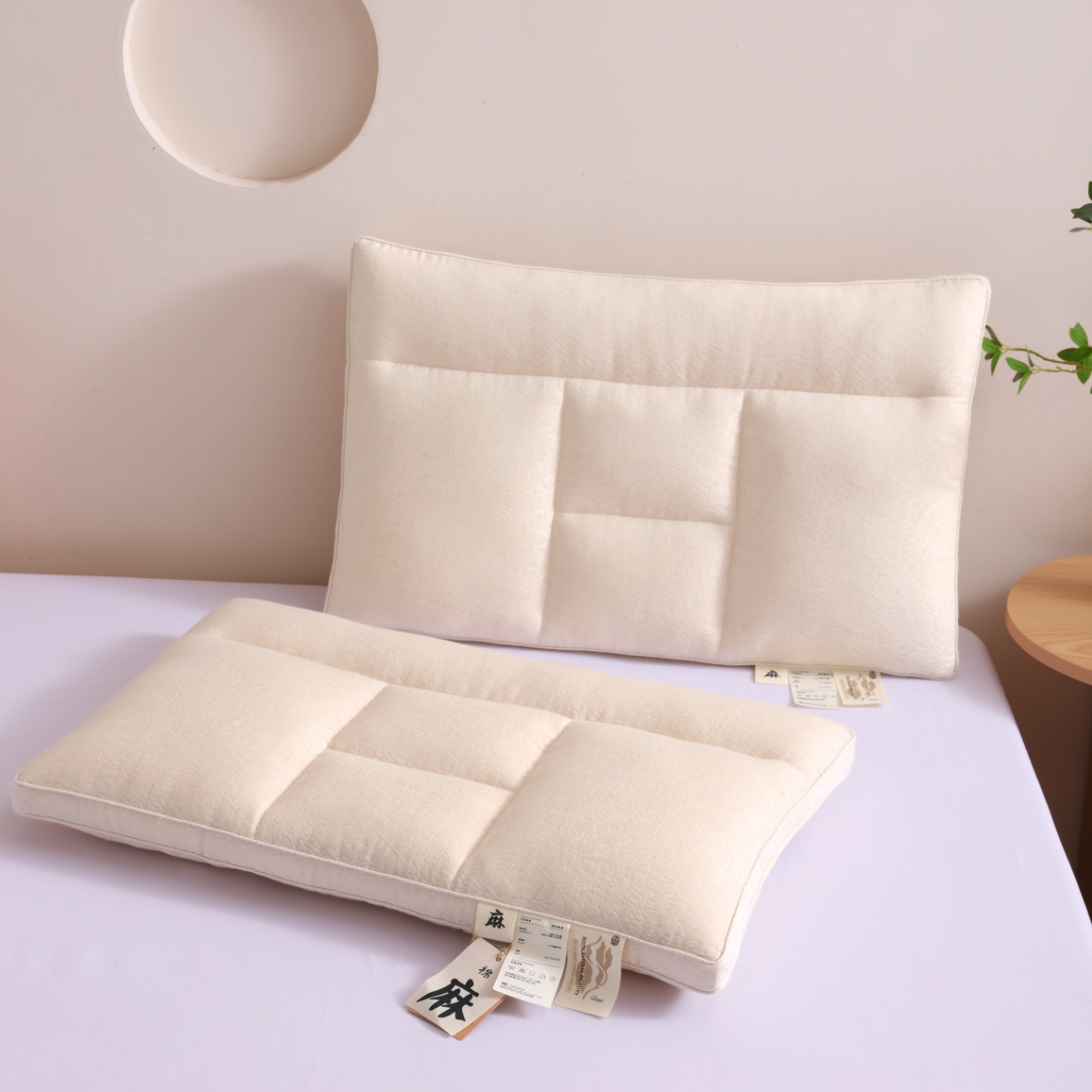 (总)yyds网供 2025新款有机植麻枕护颈枕芯全棉麻面料天然透气纯棉亚麻刺绣枕头枕芯,有机植麻枕