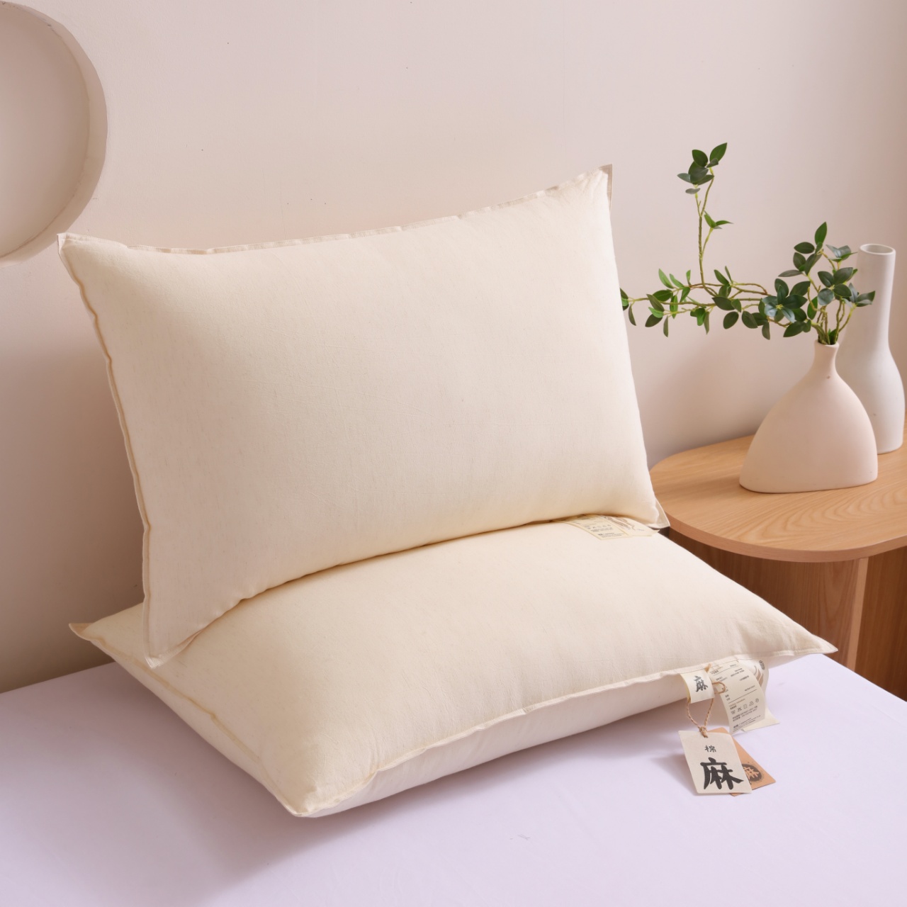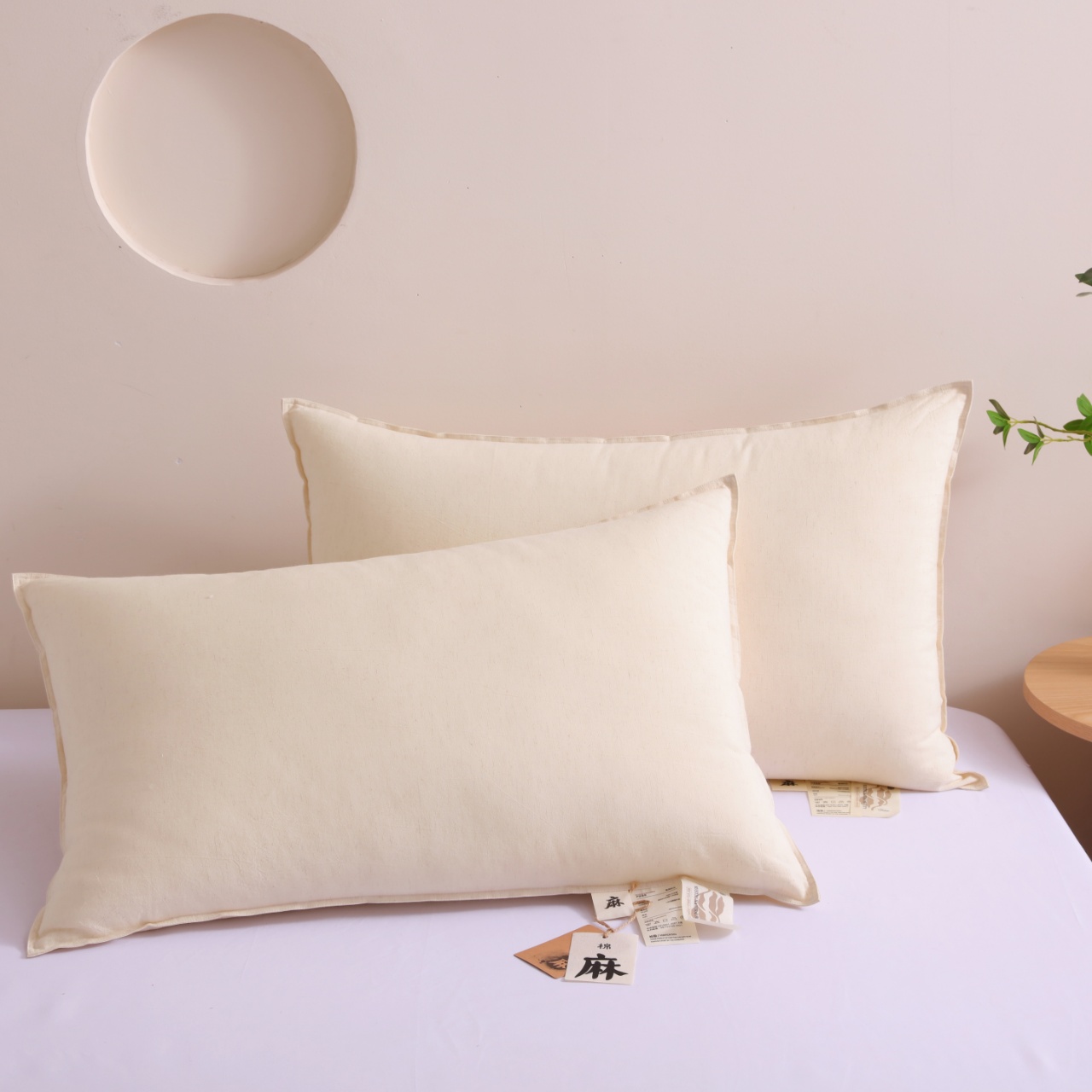 (总)yyds网供 2025新款有机植麻枕护颈枕芯全棉麻面料天然透气纯棉亚麻刺绣枕头枕芯,有机植麻枕