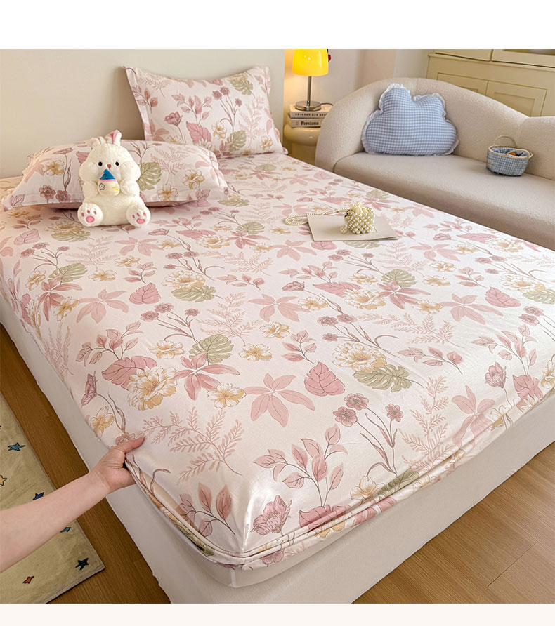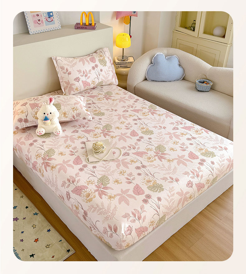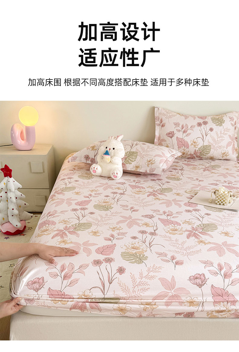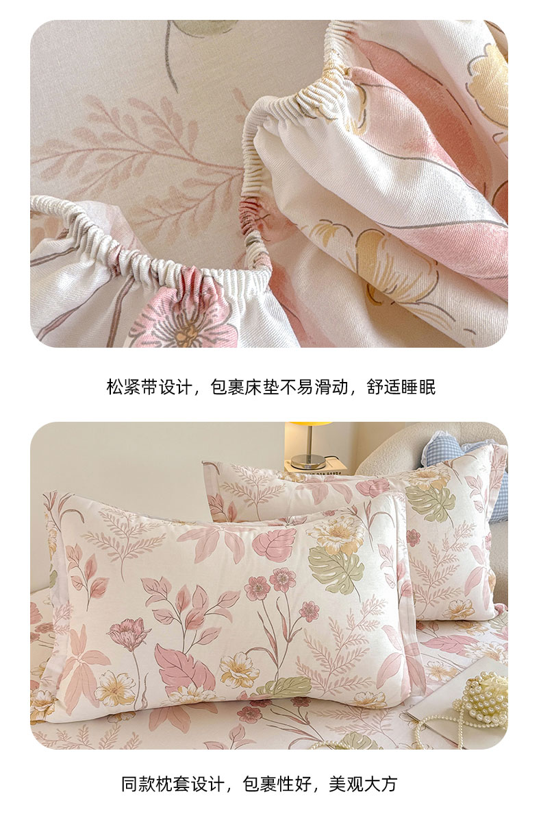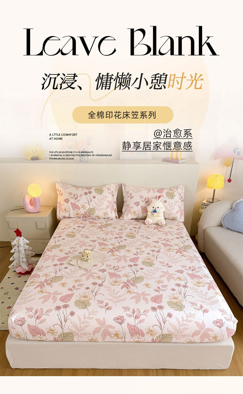 尚帛 2026新款全棉品质喷气印花爆款四件套 多规格套件 单品系列-单床笠 叶柔粉