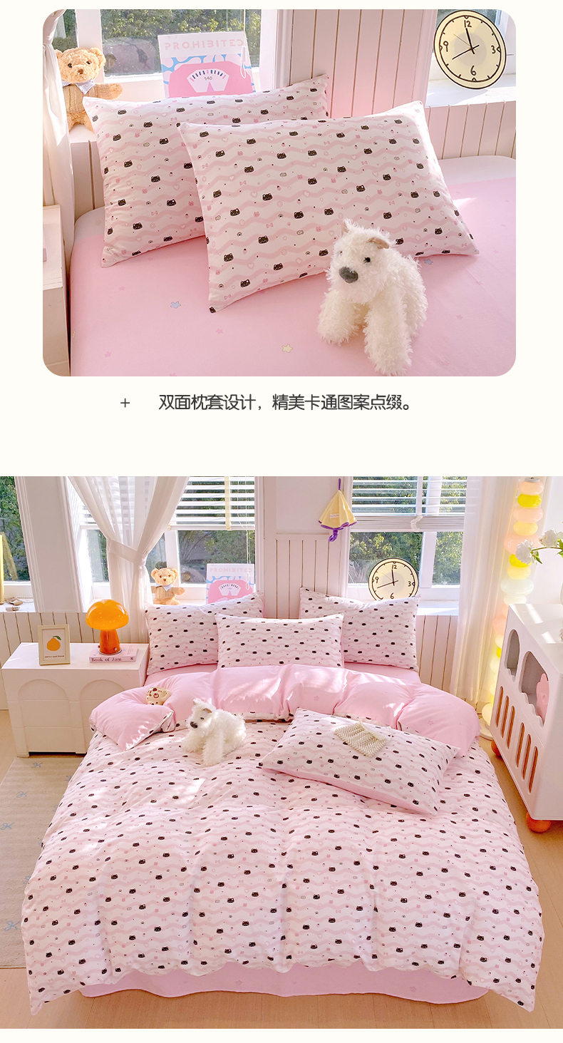 当前位置: 91家纺网 > 商品网购 > 床品套件 > 四件套 > 全棉普通四件套 > 小懒猪 2026新款全棉印花卡通系列四件套 粉喵甜梦