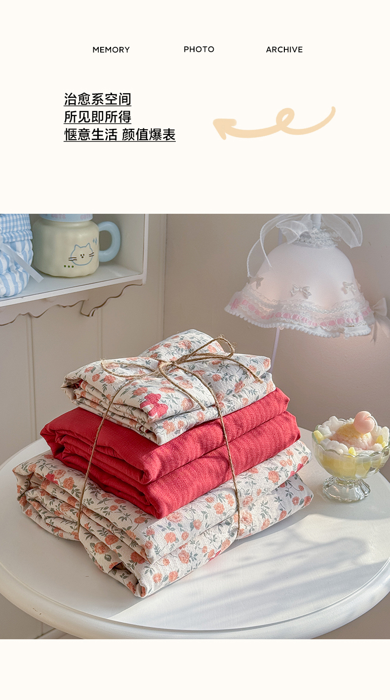 当前位置: 91家纺网 > 商品网购 > 床品套件 > 四件套 > 双层纱四件套 > 罗亿家纺 2026新款小清新云感双层纱木棉四件套系列(小红书热款推荐) 赫本小姐