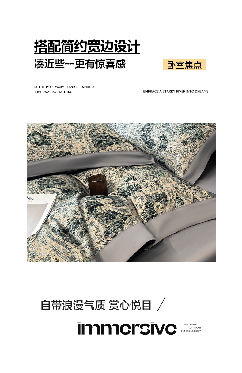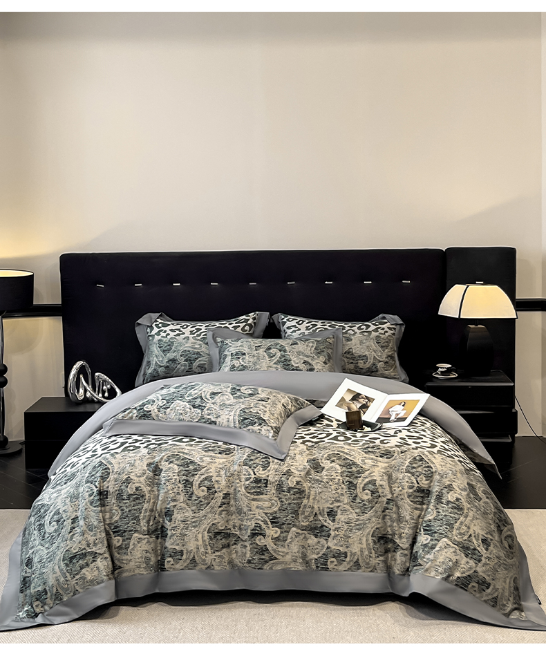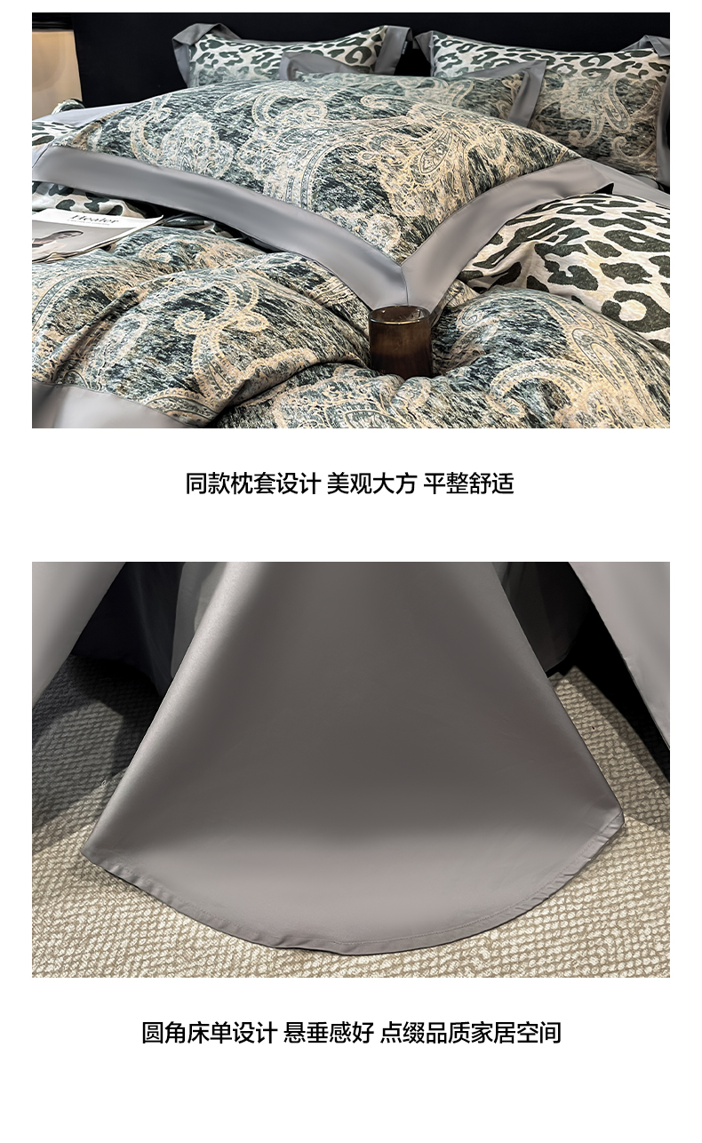 商品名称:博纳家纺 2026新款正宗60支纯棉 活性数码印花 宽边高级简奢 撞色拼角 纯棉四件套 查尔斯