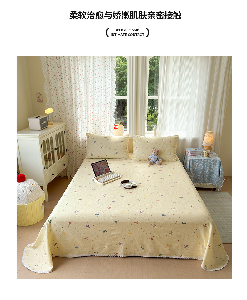 • 91家纺网 家纺一手货源 找家纺 沐芷 2026 【提供买家秀】A类白花边床单单件 单人双人床单三件套 蜡笔画