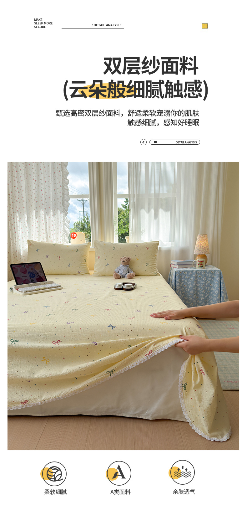 沐芷 2026 【提供买家秀】A类白花边床单单件 单人双人床单三件套 蜡笔画