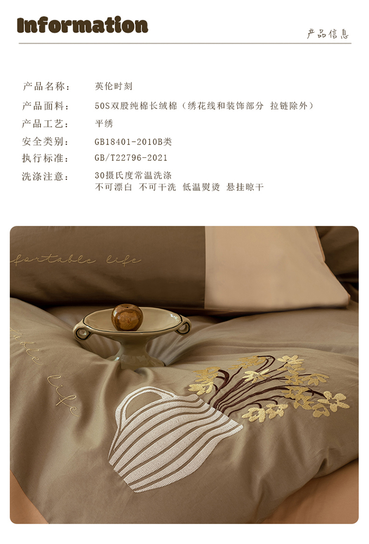 商品名称:波比可可 2026新款50s长绒棉纯棉全棉居家轻奢四件套-款式三 英伦时刻