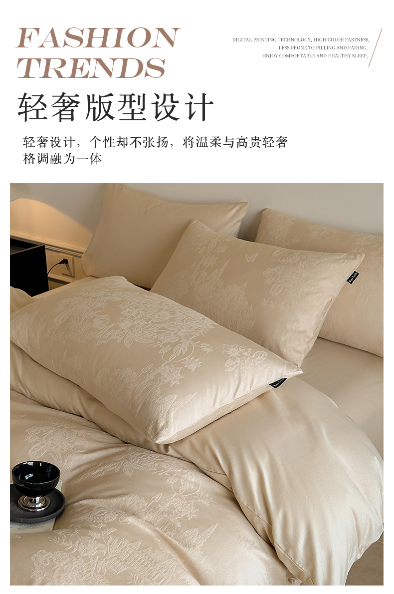 (总)卧趣家纺 2026新款A类60S贡缎提花全棉四件套,蝶梦-绿,蝶梦-紫,蝶音之舞-紫,花漾甜心-米,花漾甜心-紫,蕉野-奶绿,克拉拉-灰,克拉拉-米,浪漫情缘-粉,梦幻城堡,千羽-蓝,千羽-米,山野慕色-豆沙