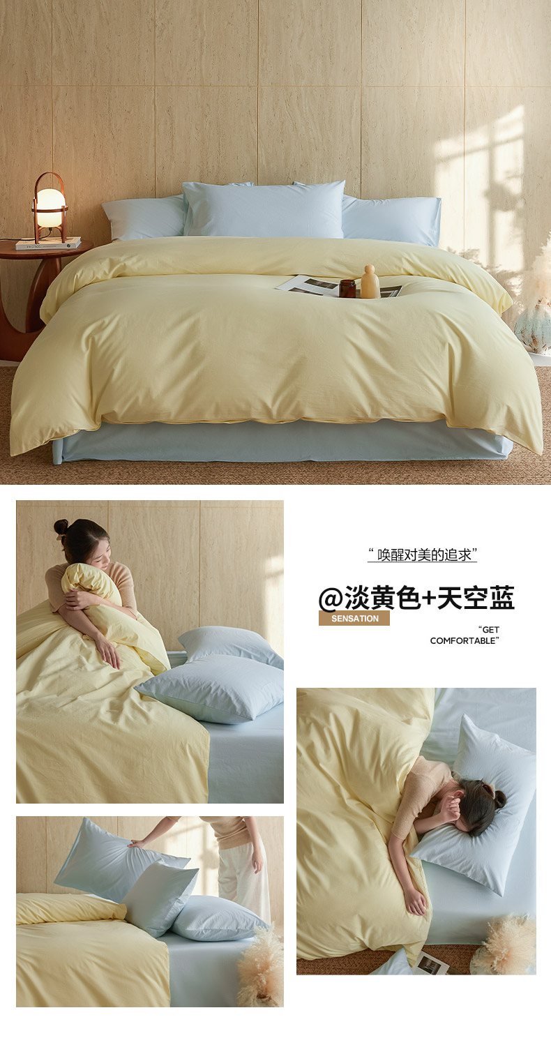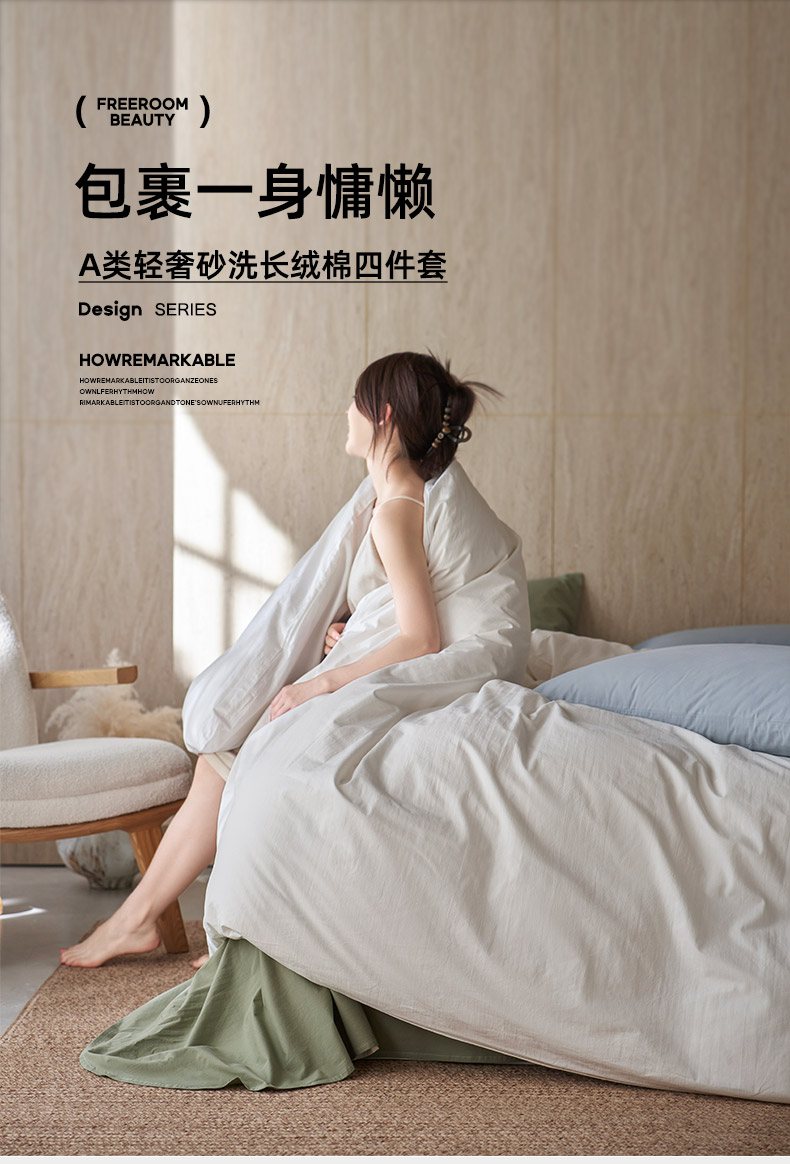 当前位置: 91家纺网 > 商品网购 > 床品套件 > 四件套 > 全棉普通四件套 > 轩和家居 2026新款全棉高支旧感砂洗长绒棉拼色四件套 松石绿+浅云白