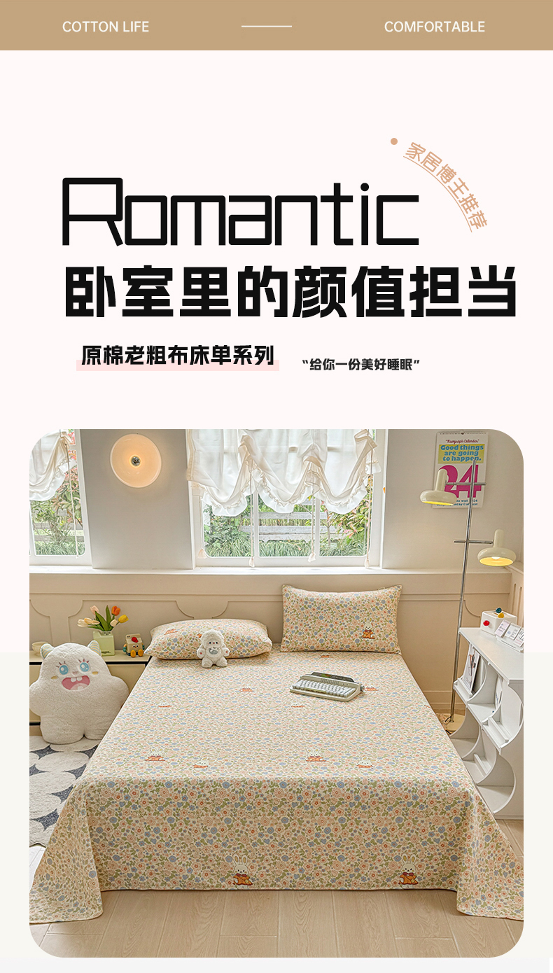 (总)爱彼家纺 2026新款升级细沙印花老粗布床单单品床单床单单件-细沙系列四,花笺,花漾手礼,花屿南瓜,蓝花序,蓝菊绘,山河日立,甜心