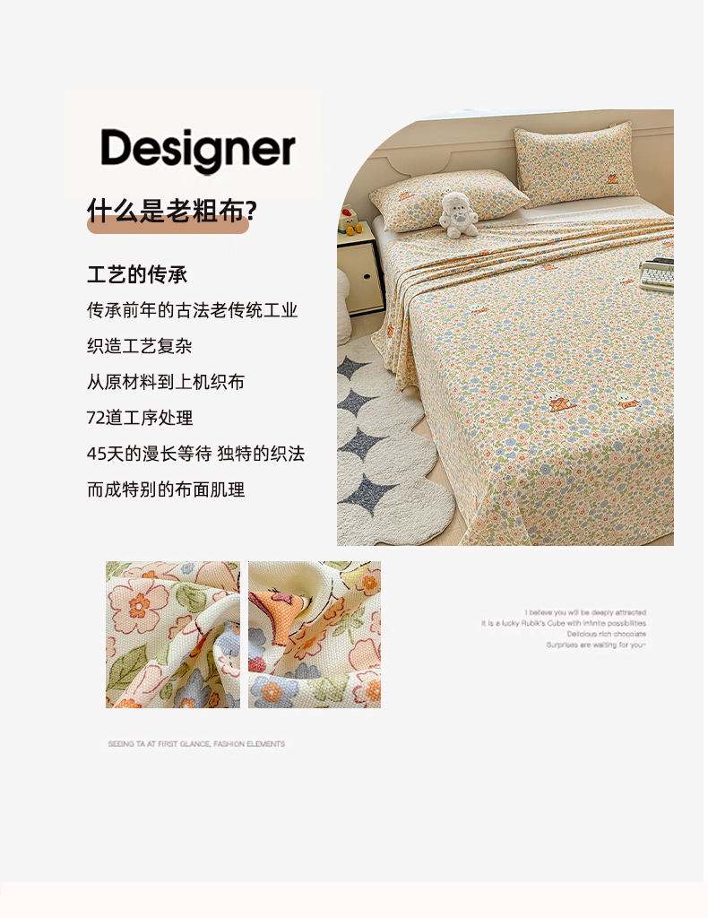 (总)爱彼家纺 2025夏季古艺原棉老粗布床单三件套凉席-系列五,安妮,半蕾,春日撩人,橄榄绿,栝静,橘子,卡其,蓝玫瑰,陌微,睡小熊,土耳其,小小熊,小熊之家,字母小熊