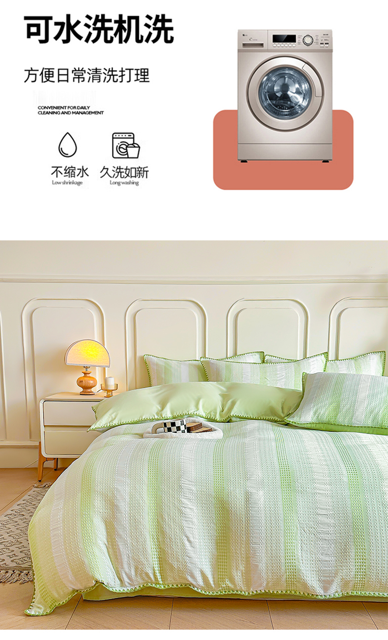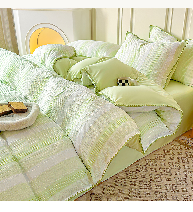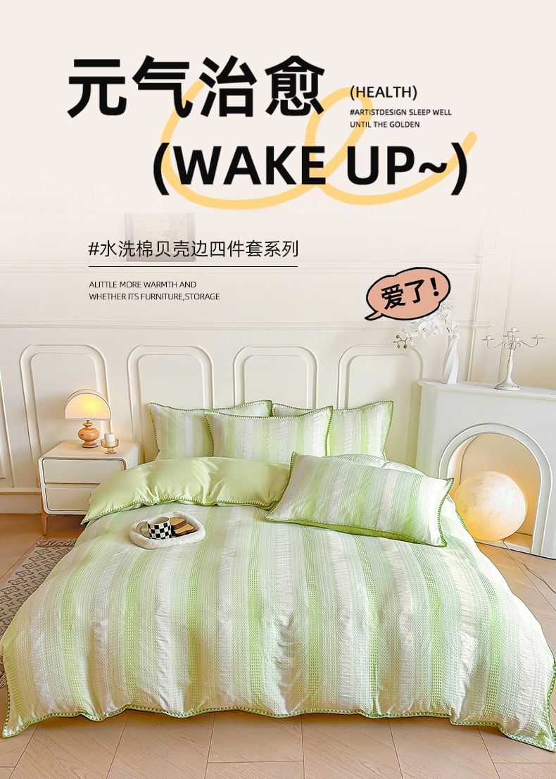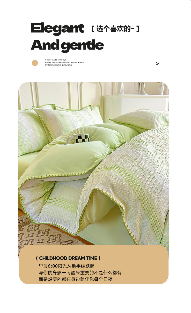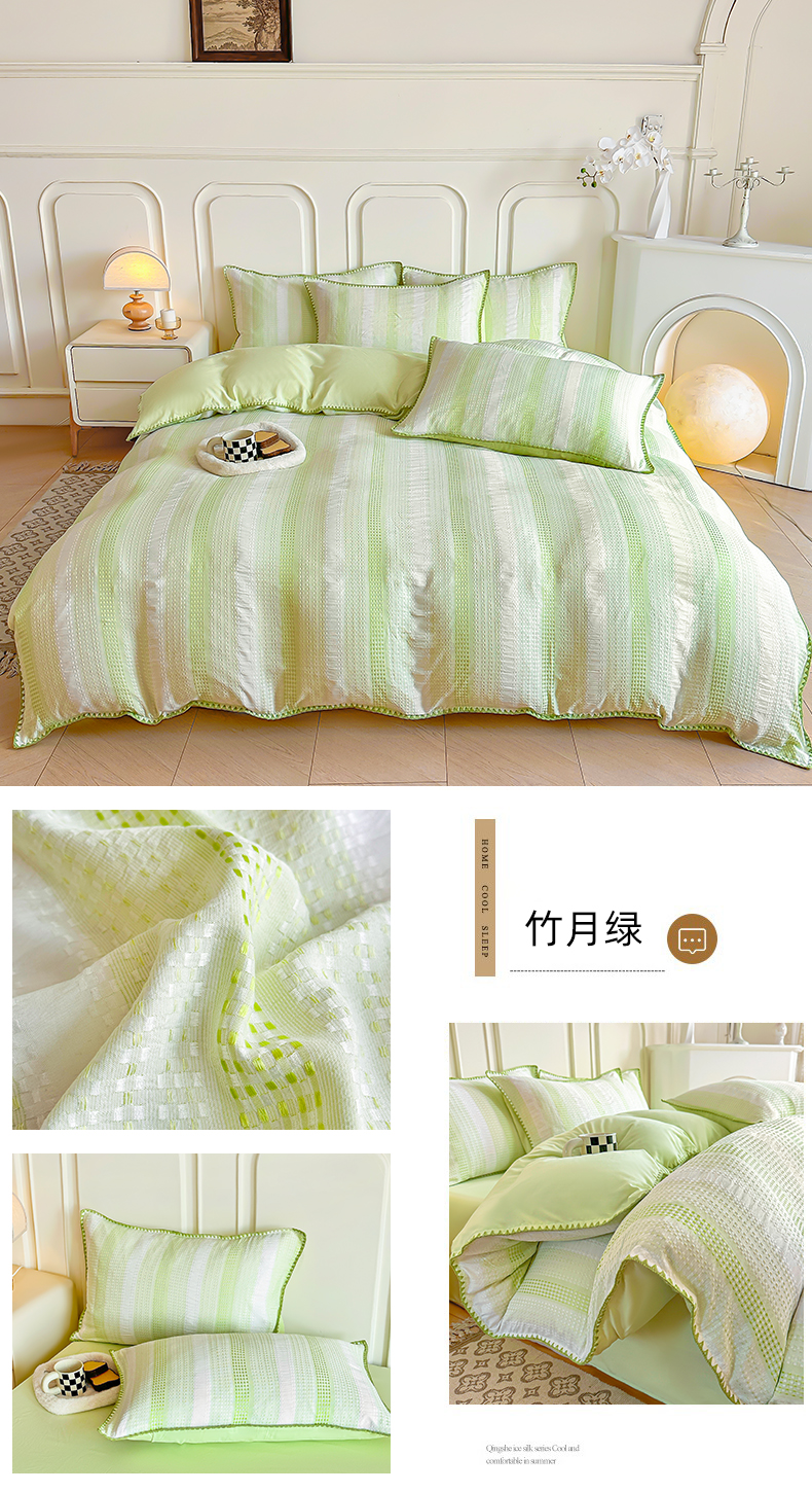 当前位置: 91家纺网 > 商品网购 > 床品套件 > 四件套 > 水洗棉四件套 > 木子家纺 2026新款水洗棉贝壳边四件套-皖沙 竹月绿