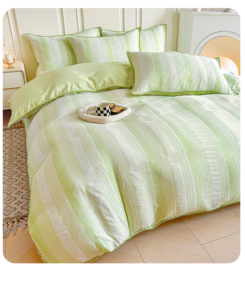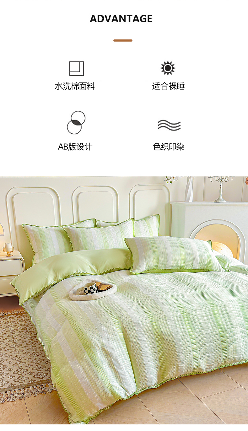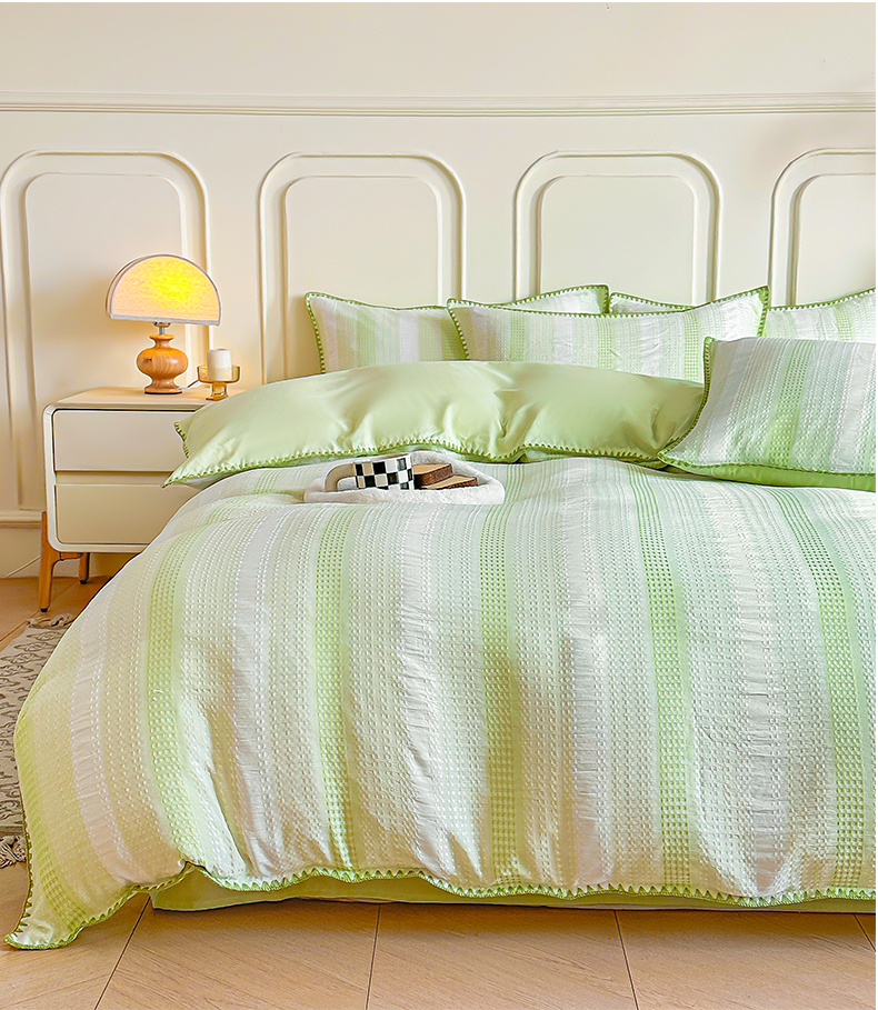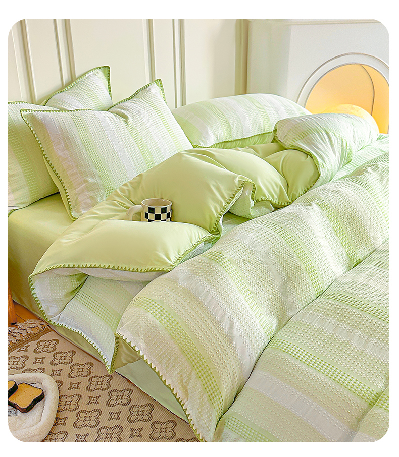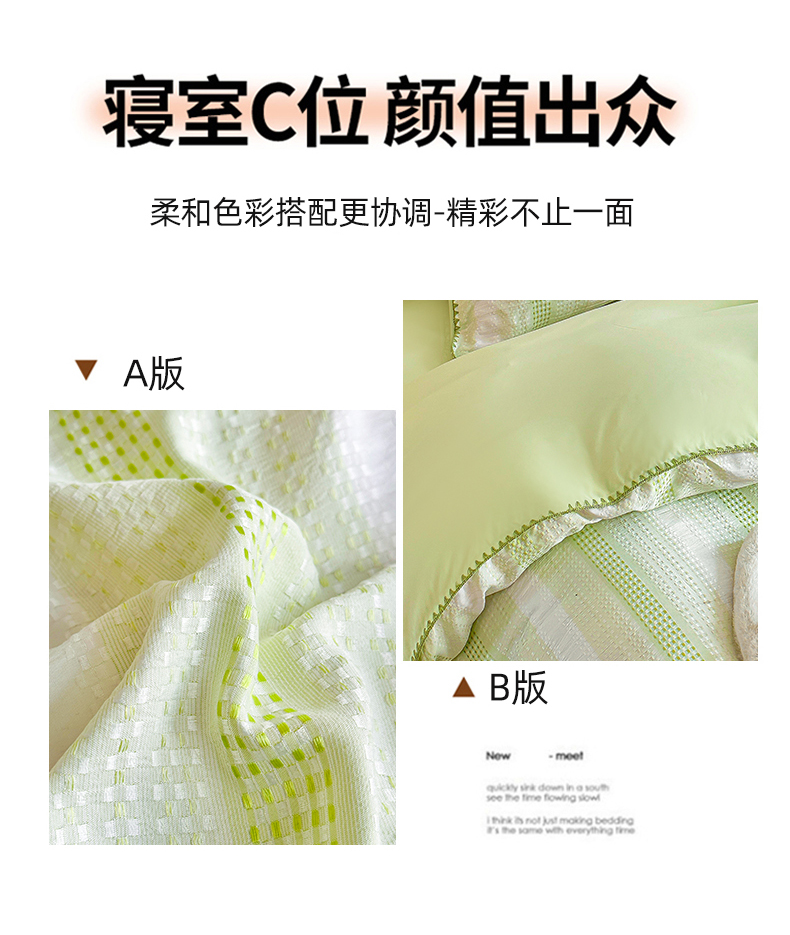 当前位置: 91家纺网 > 商品网购 > 床品套件 > 四件套 > 水洗棉四件套 > 木子家纺 2026新款水洗棉贝壳边四件套-皖沙 竹月绿