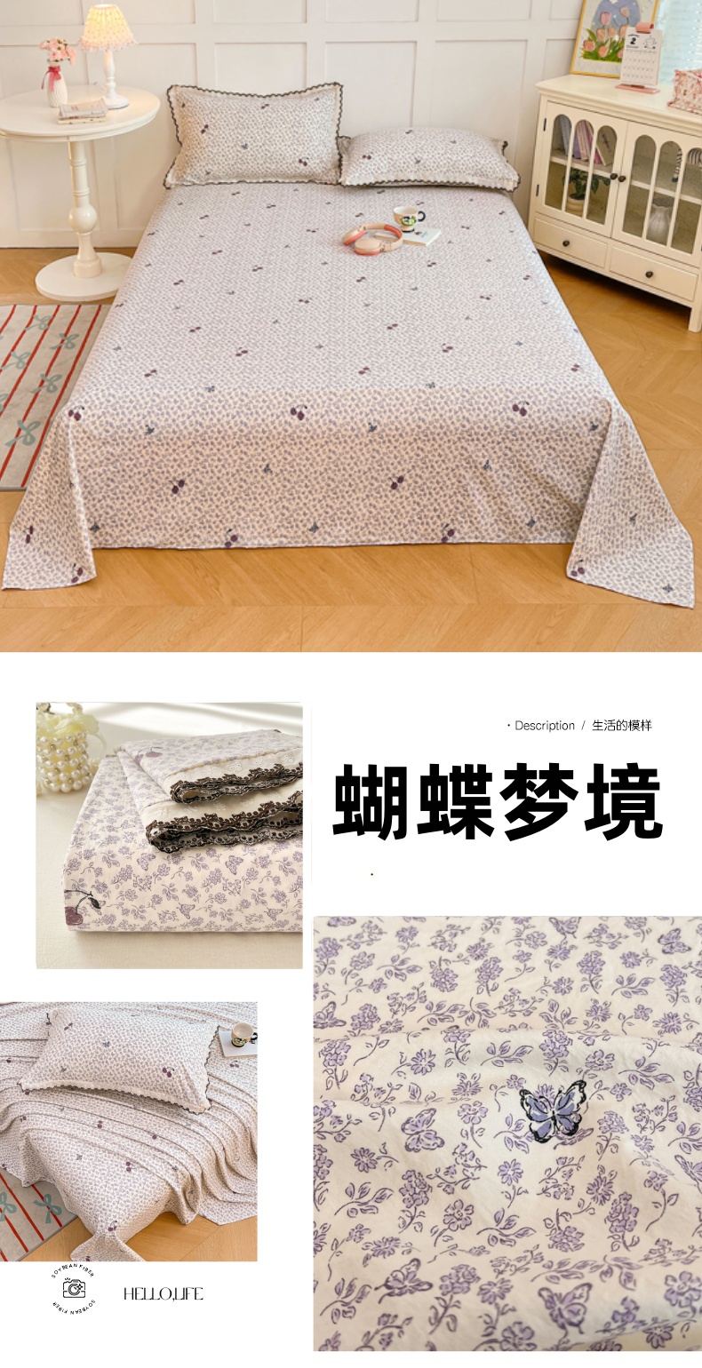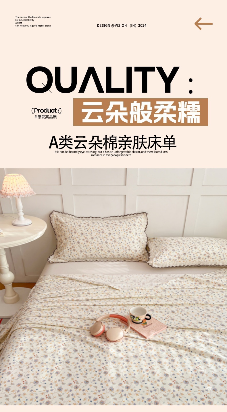 • 91家纺网 家纺一手货源 找家纺 圣比熊 2026新款A类云朵棉床单亲肤四季款席梦思床罩全包床单三件套 花蔓清风