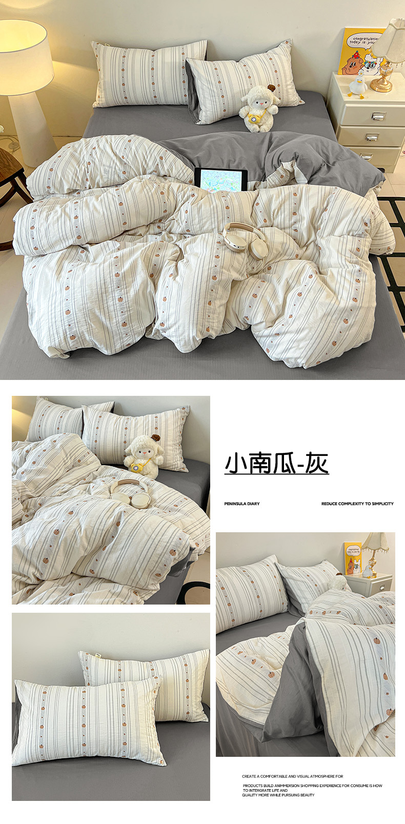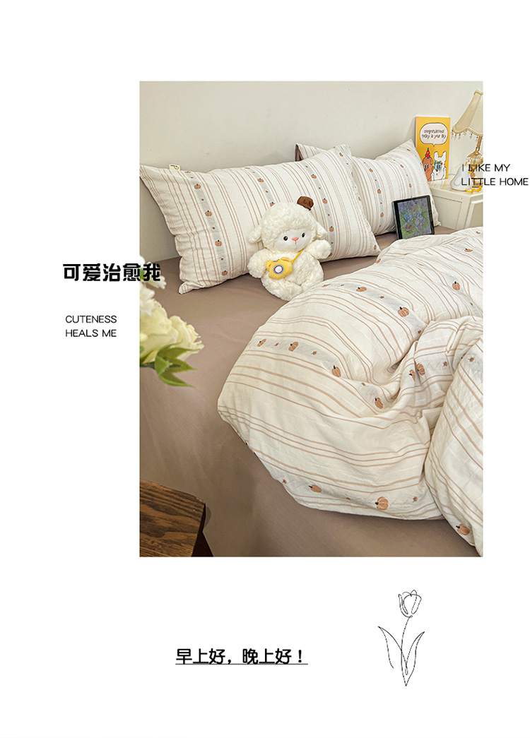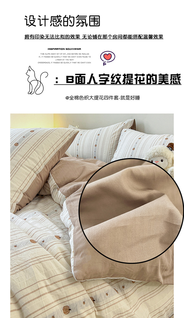 (总)爱丽丝 2026新款全棉剪花色织提花四件套,花颜-咖,花颜-蓝,可爱兔-粉,可爱兔-咖,小南瓜-灰,小南瓜-咖