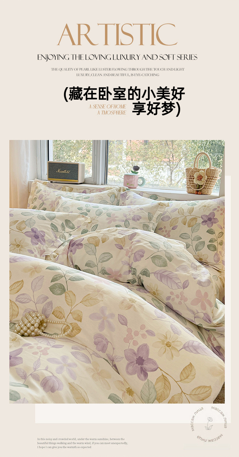 当前位置: 91家纺网 > 商品网购 > 床品套件 > 四件套 > 全棉普通四件套 > 名优家纺 2026新款13070全棉印花四件套 抚香意叶