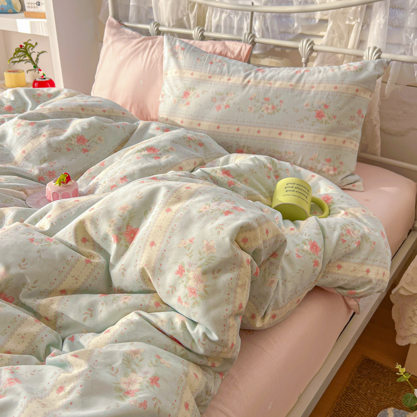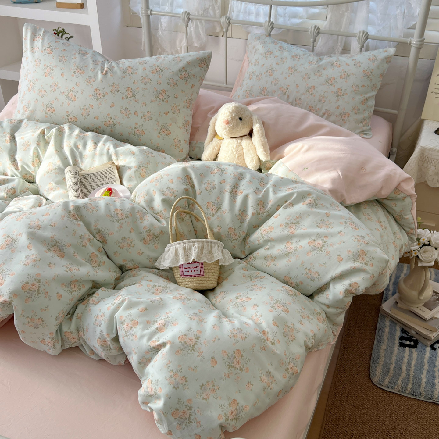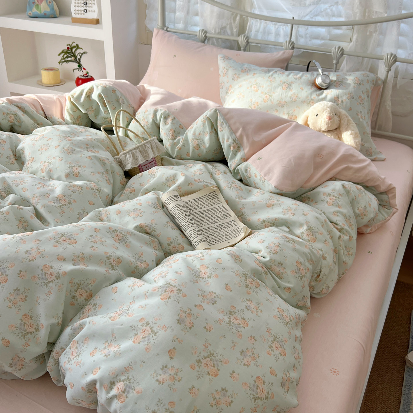 当前位置: 91家纺网 > 商品网购 > 床品套件 > 四件套 > 全棉普通四件套 > 桃喜 2026春夏新品全棉碎花三件套四件套-场景二 绿格拼布碎花(全棉)