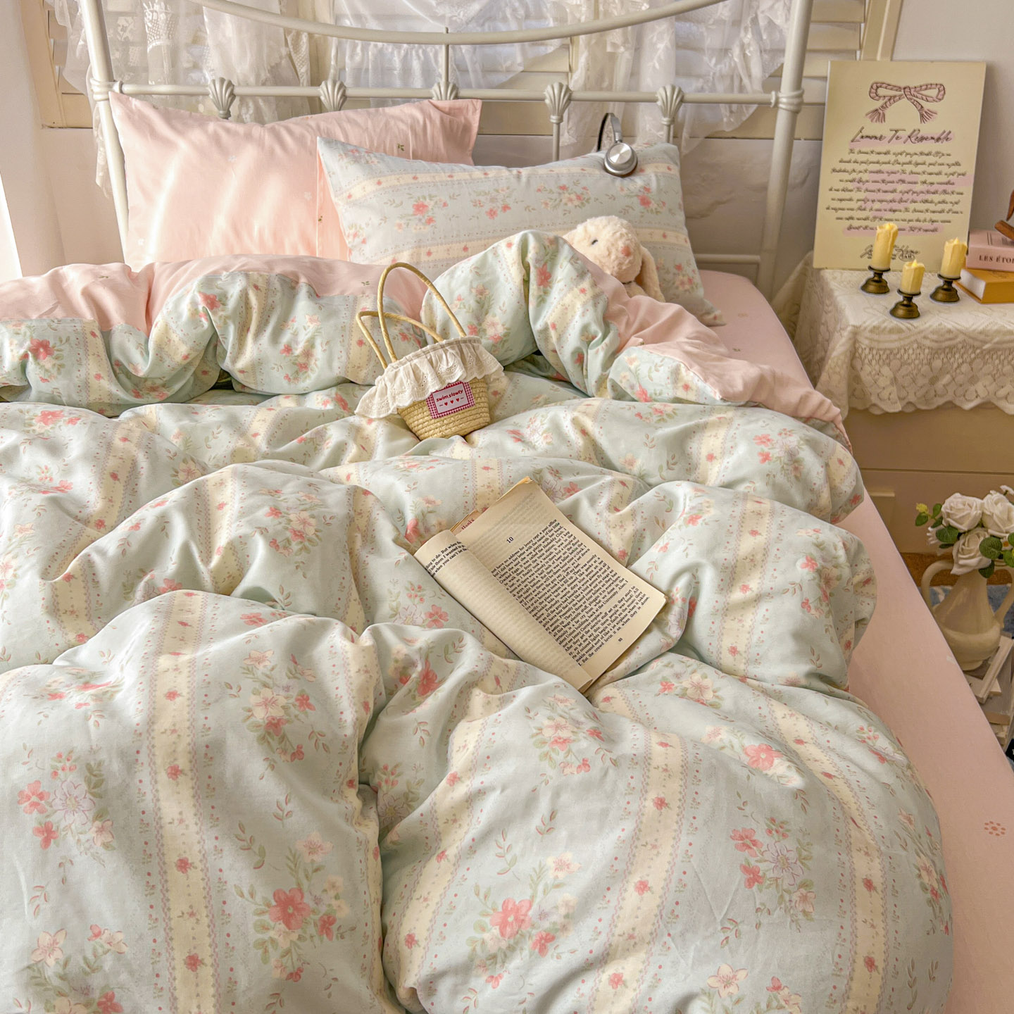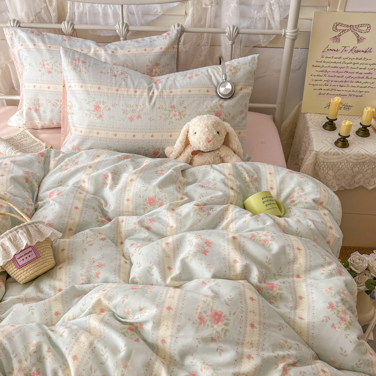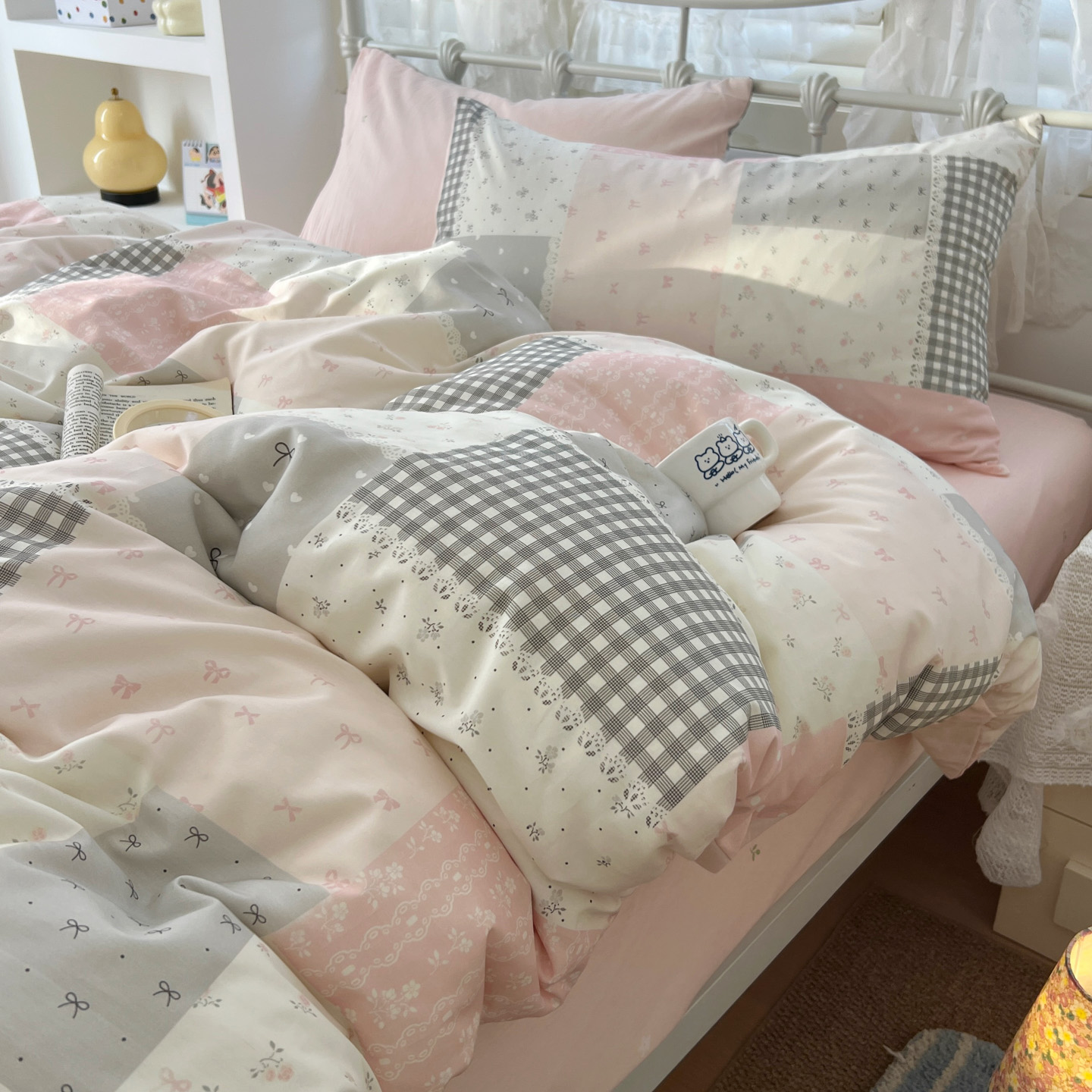 当前位置: 91家纺网 > 商品网购 > 床品套件 > 四件套 > 全棉普通四件套 > 桃喜 2026春夏新品全棉碎花三件套四件套-场景二 绿格拼布碎花(全棉)