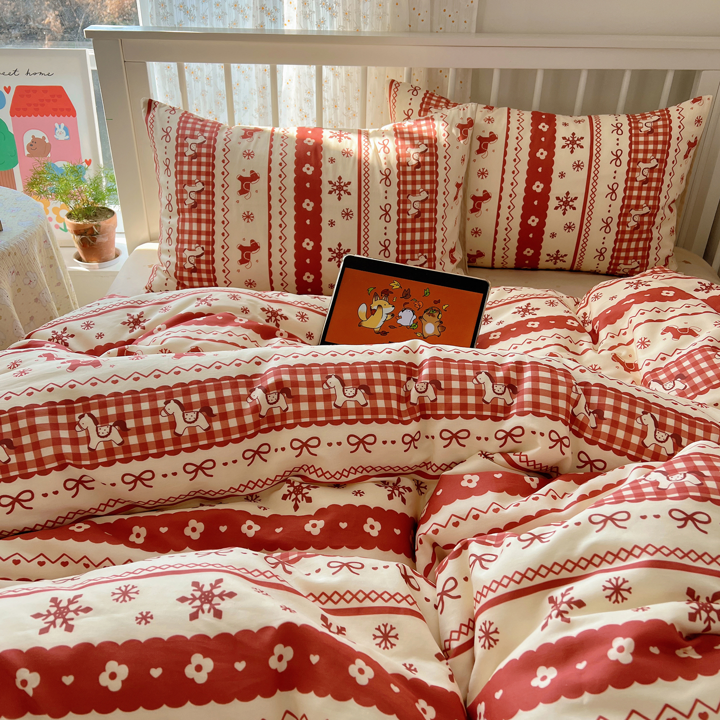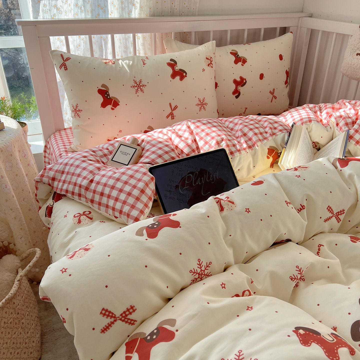 桃喜 2026春夏新品全棉卡通学生三件套四件套 费尔岛姜饼人