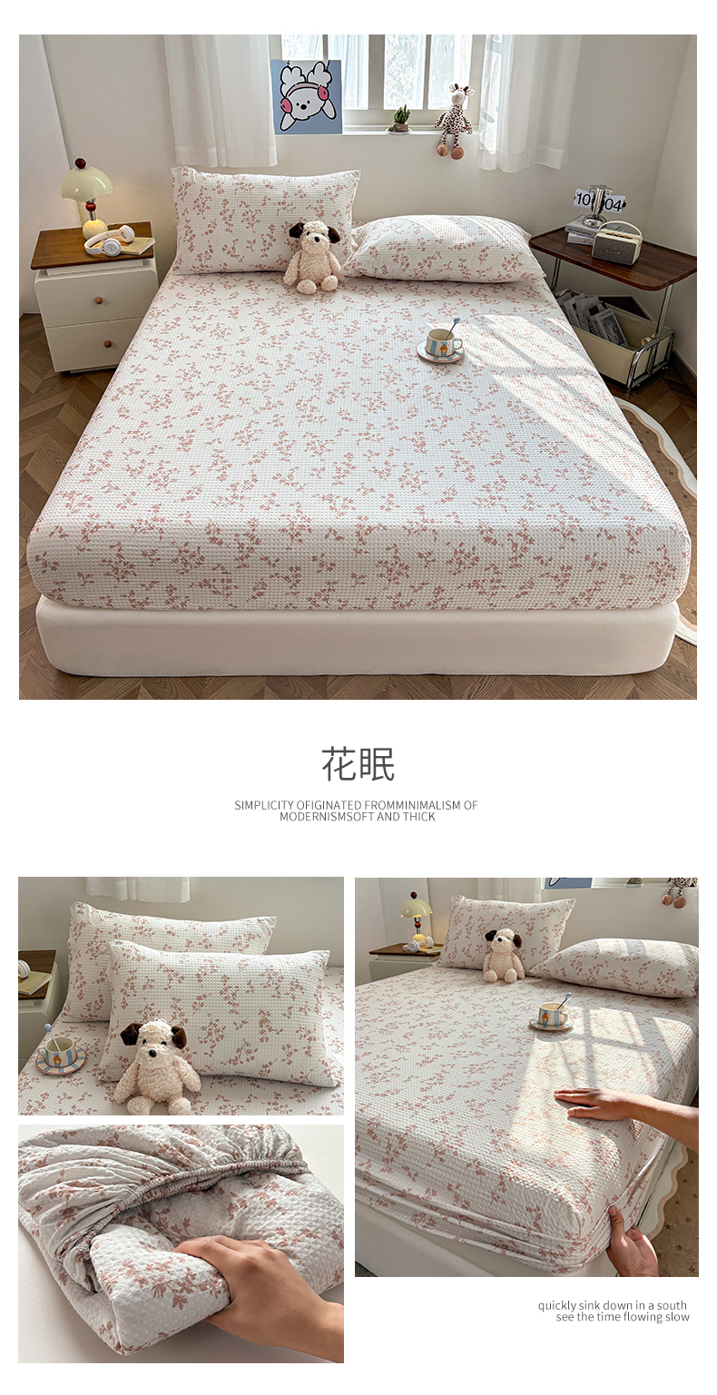 商品名称:居眠 2026新款全棉印花华夫格床笠 樱桃小象