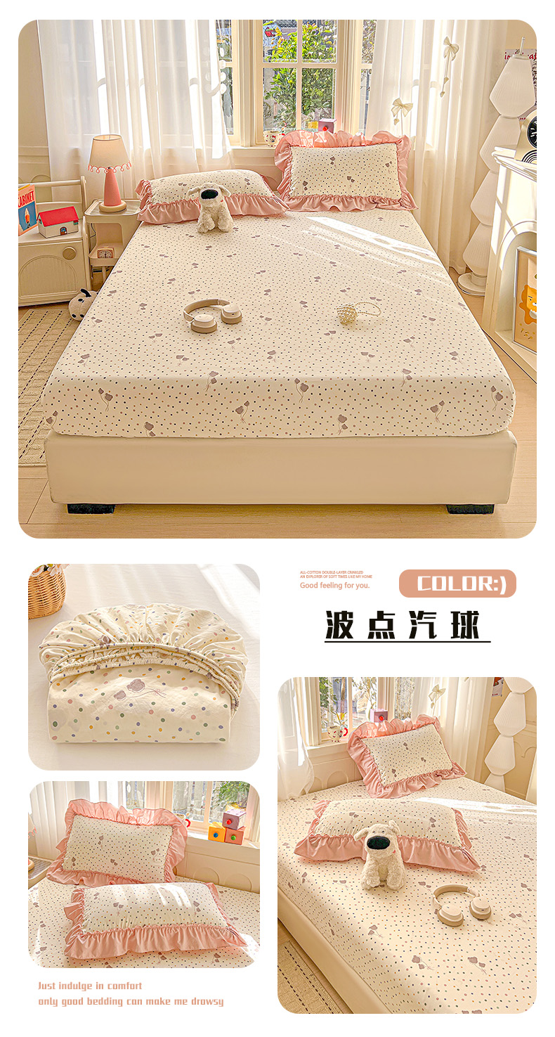 (总)富米莱(原臻工厂) 2026新款水洗棉波点黑格球球绝绝子床盖床裙四裙套,波点-粉,波点-蓝,波点-紫,波点-米白