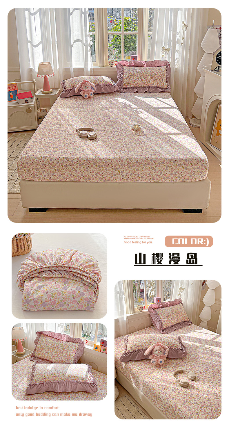 (总)富米莱(原臻工厂) 2026春夏新款仿棉A类韩系大花边床盖床裙四件套,小杏芙,波点汽球,悠悠花香,烟火气星辰,小花蓝,小花粉,晚樱落海,山樱漫岛,玫瑰庄园,花影,耳机猫猫,动物世界,七彩点点,艾利花园