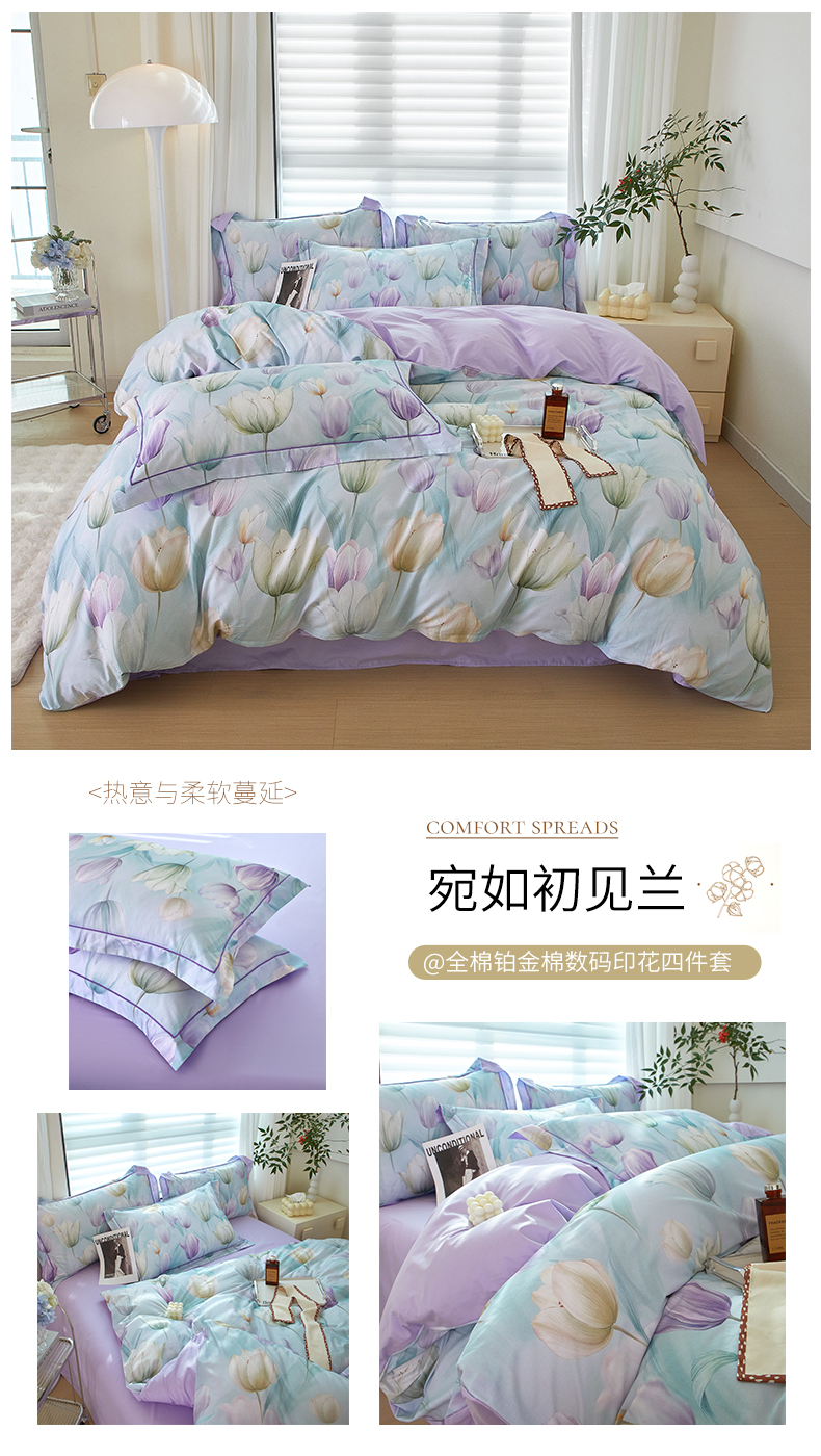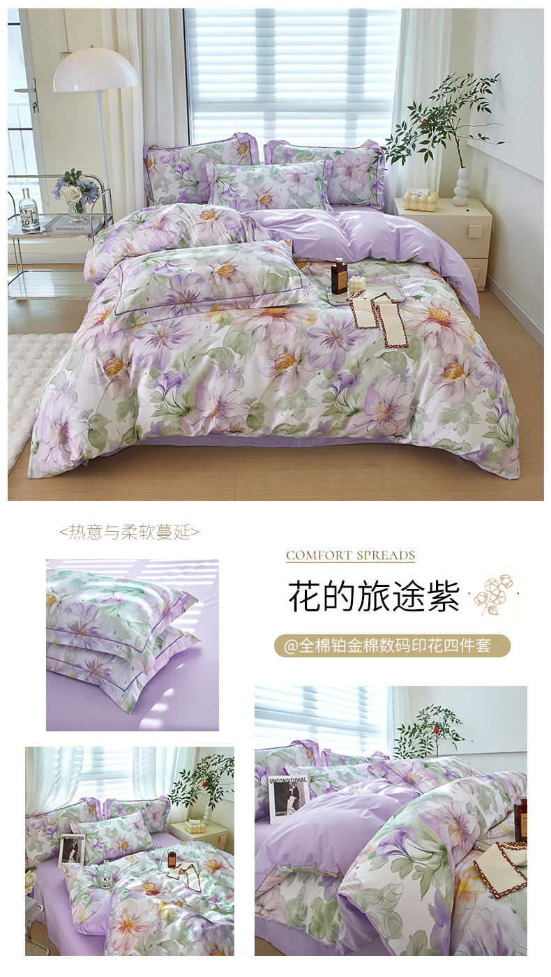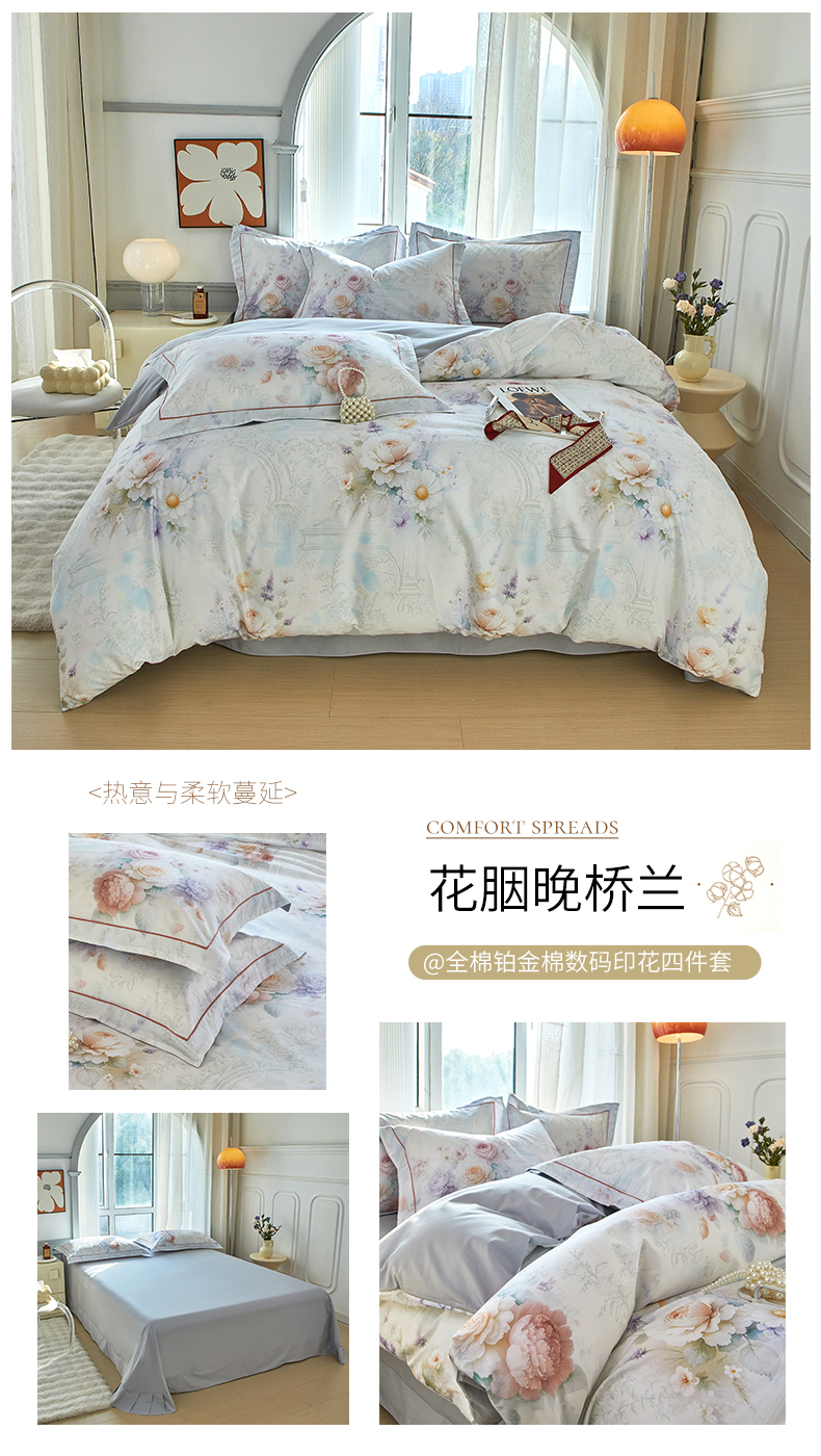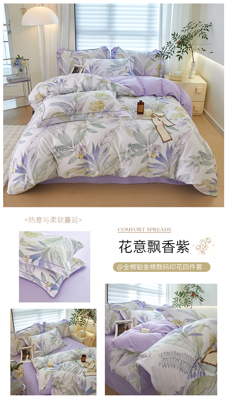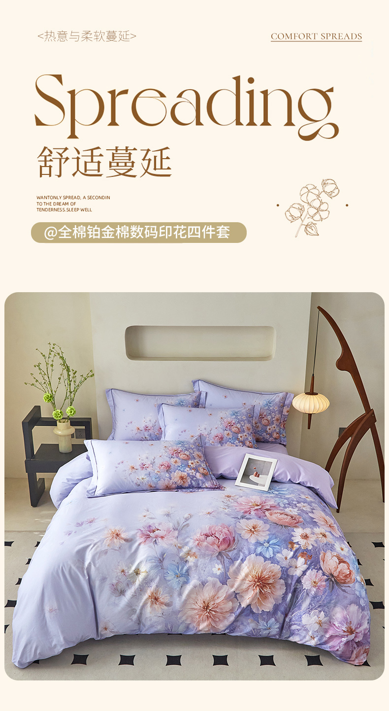 启航家居 2026新款全棉铂金棉数码印花四件套 如沁芬芳兰