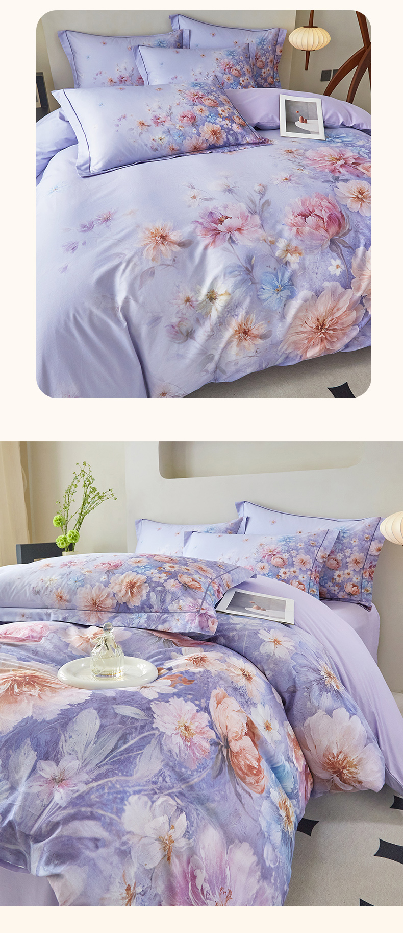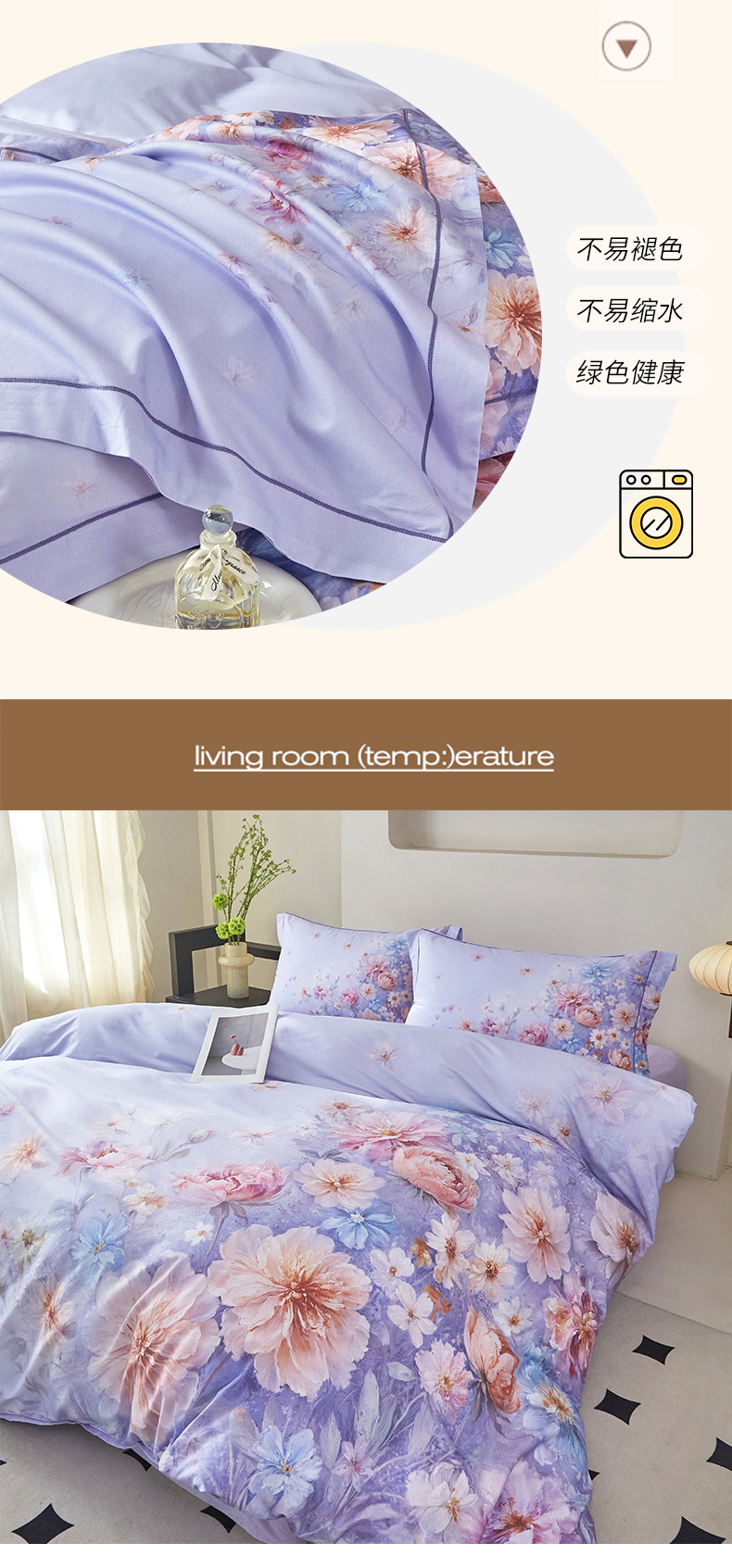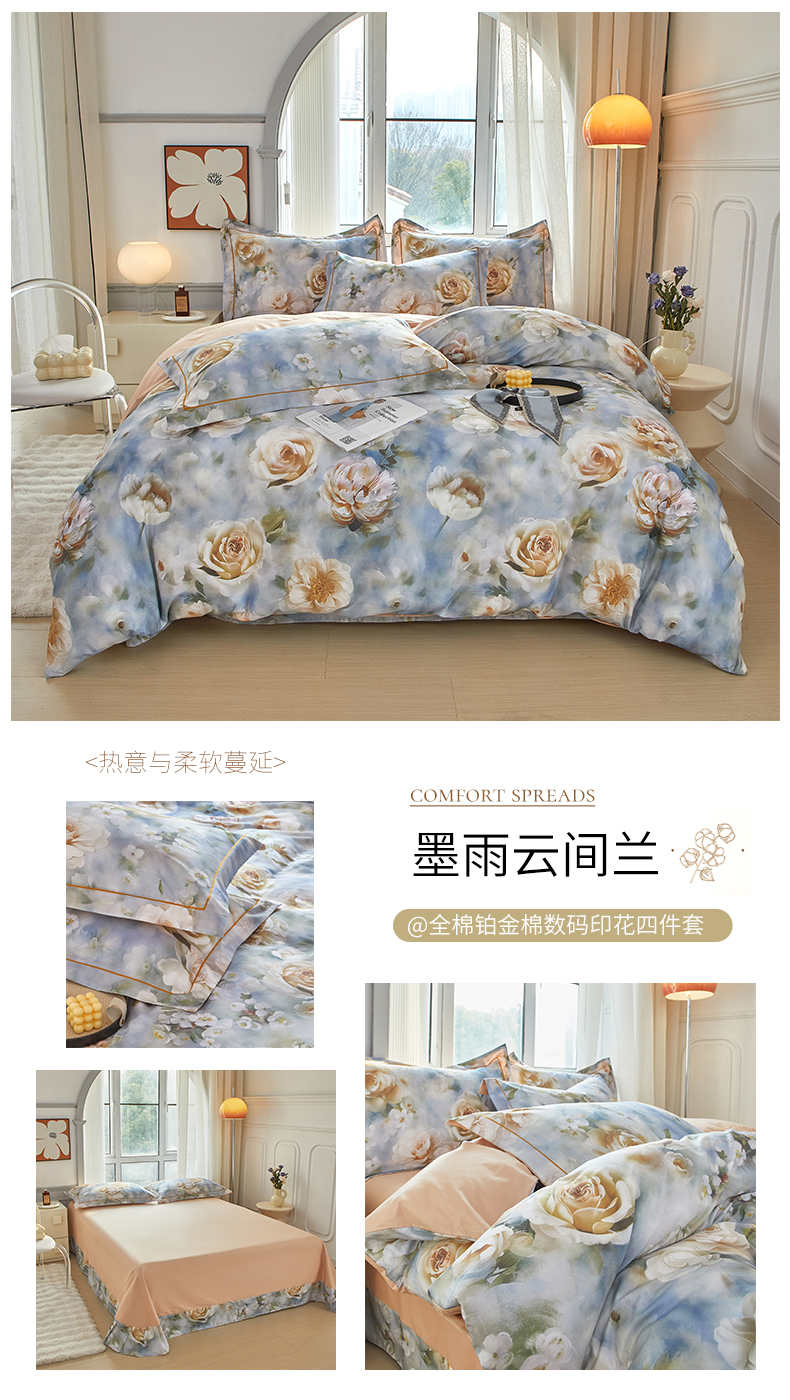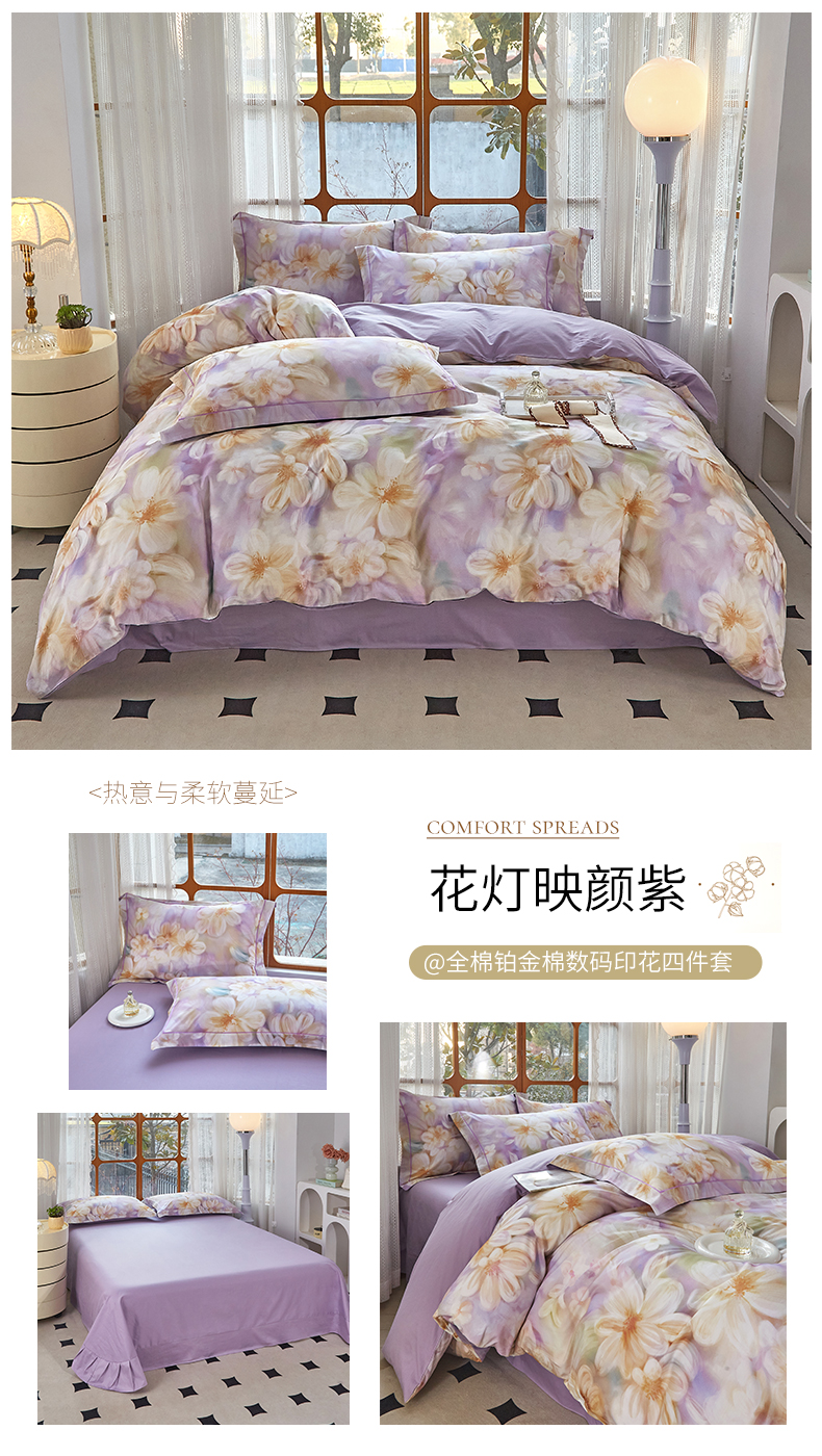 启航家居 2026新款全棉铂金棉数码印花四件套 如沁芬芳兰