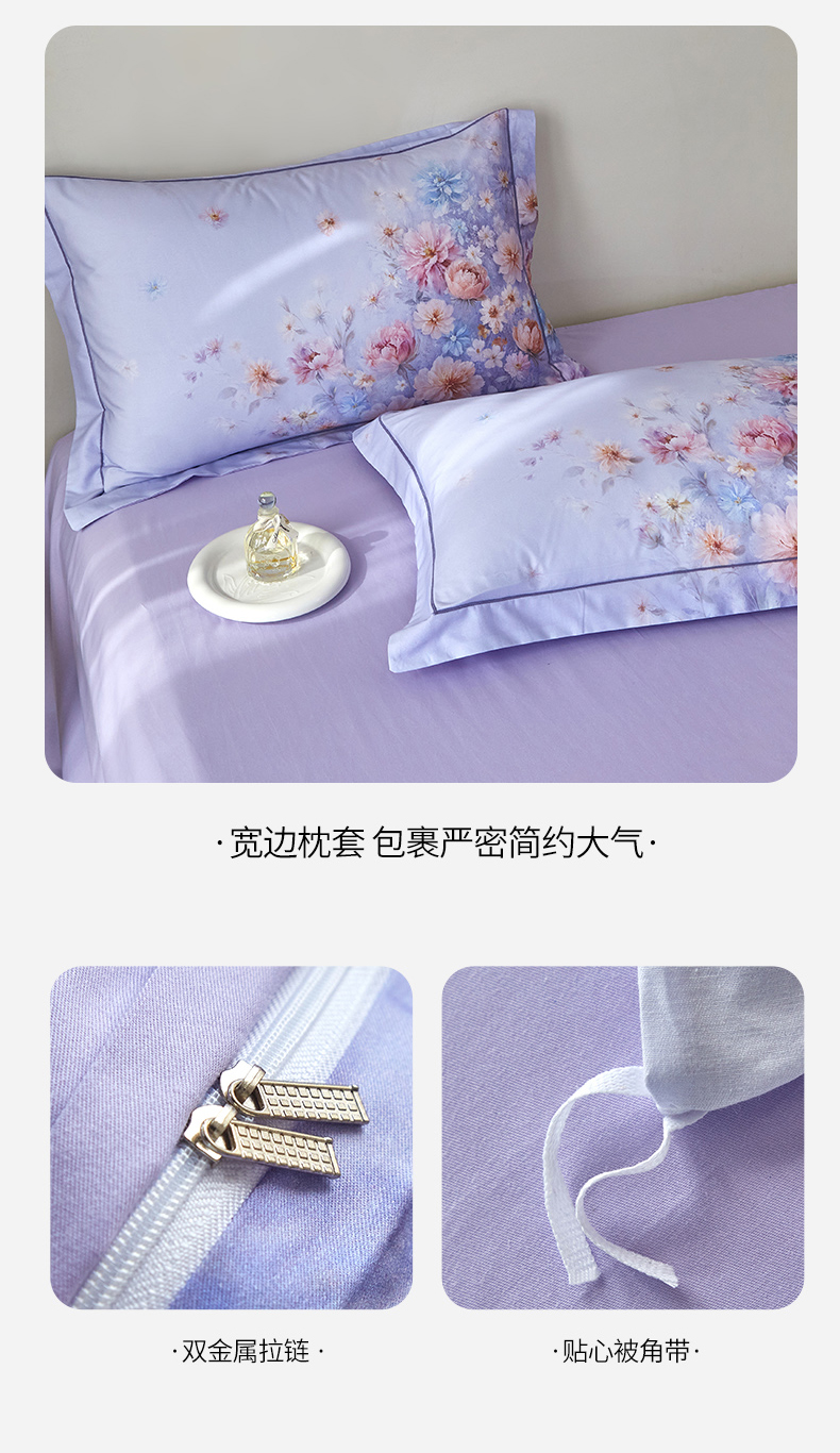 (总)启航家居 2025春夏新款莱赛尔天丝数码印花四件套,半纸叶灰,池禾韵兰,花园派对沙色,梦境之翼兰,梦境之翼绿,小雨录粉,烟花间粉,烟花间绿,樱岛春漫粉,云栖畔灰兰,栀花语粉,紫陌兰,紫陌紫