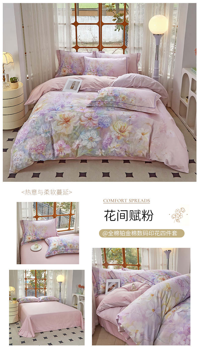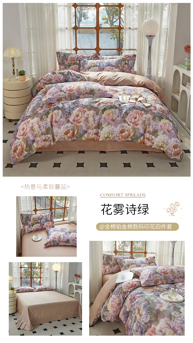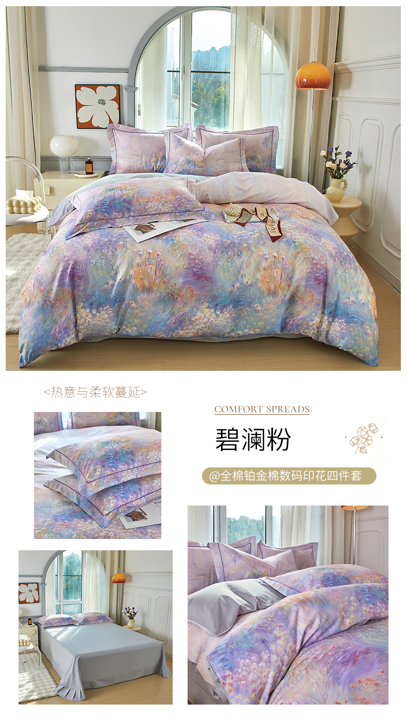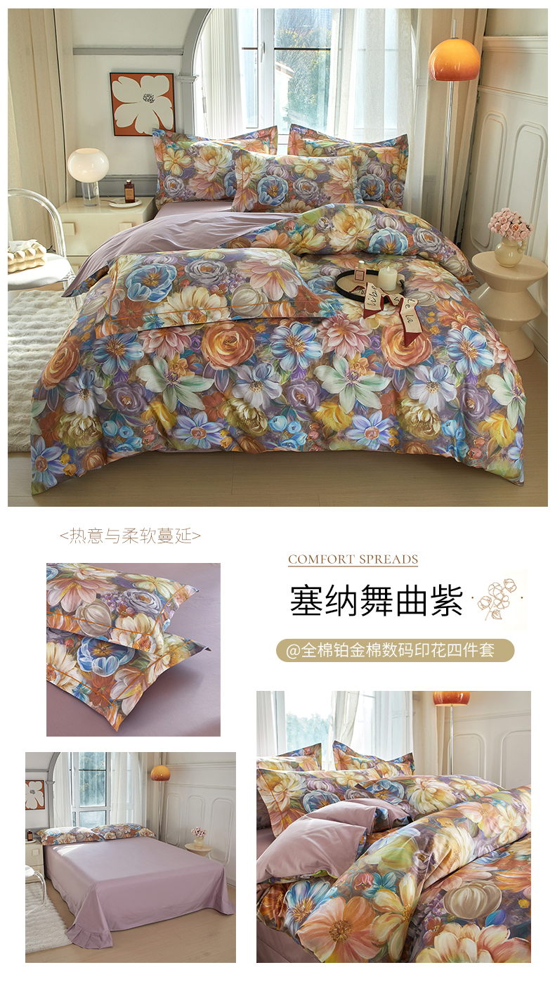 (总)启航家居 2025新款全棉铂金棉数码印花四件套,风香花倦,花的嫁纱,洛香忆梦绿,暮云春树灰,翩若惊鸿粉,普罗旺斯紫,新塞纳舞曲红,新塞纳舞曲紫