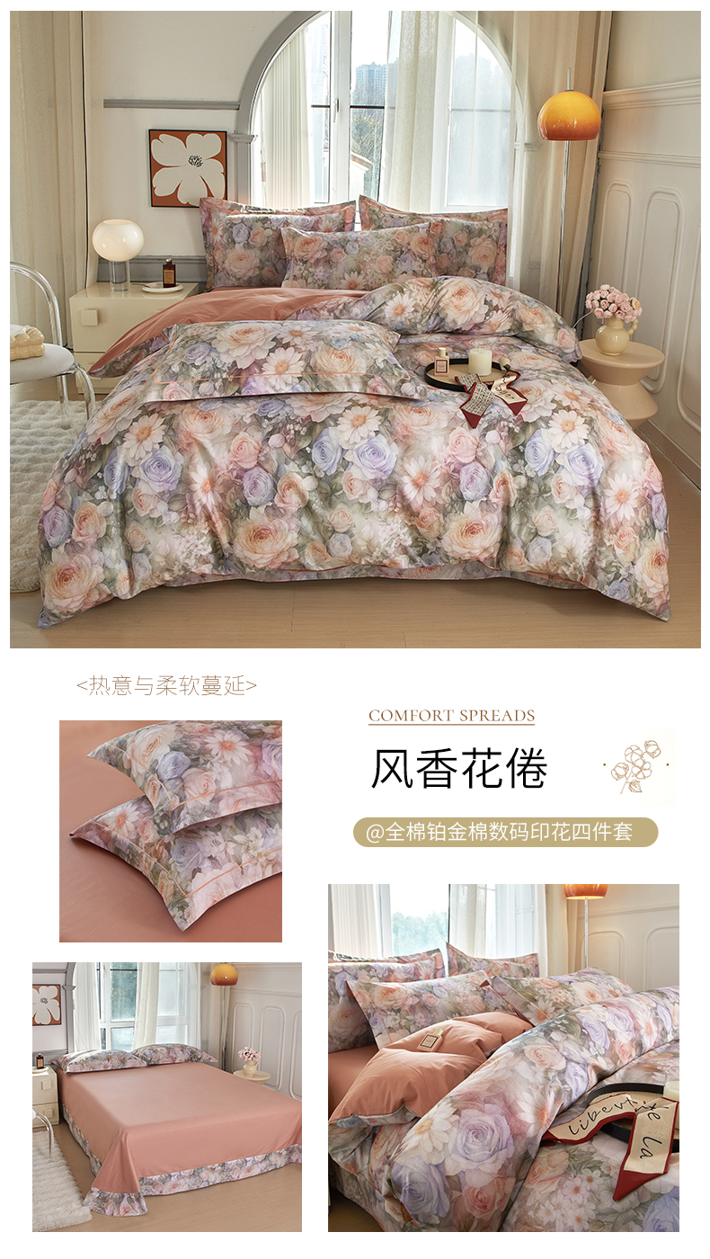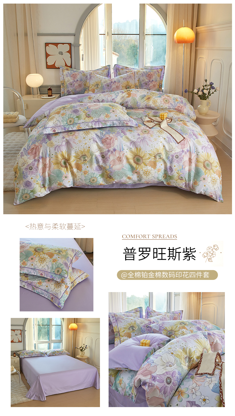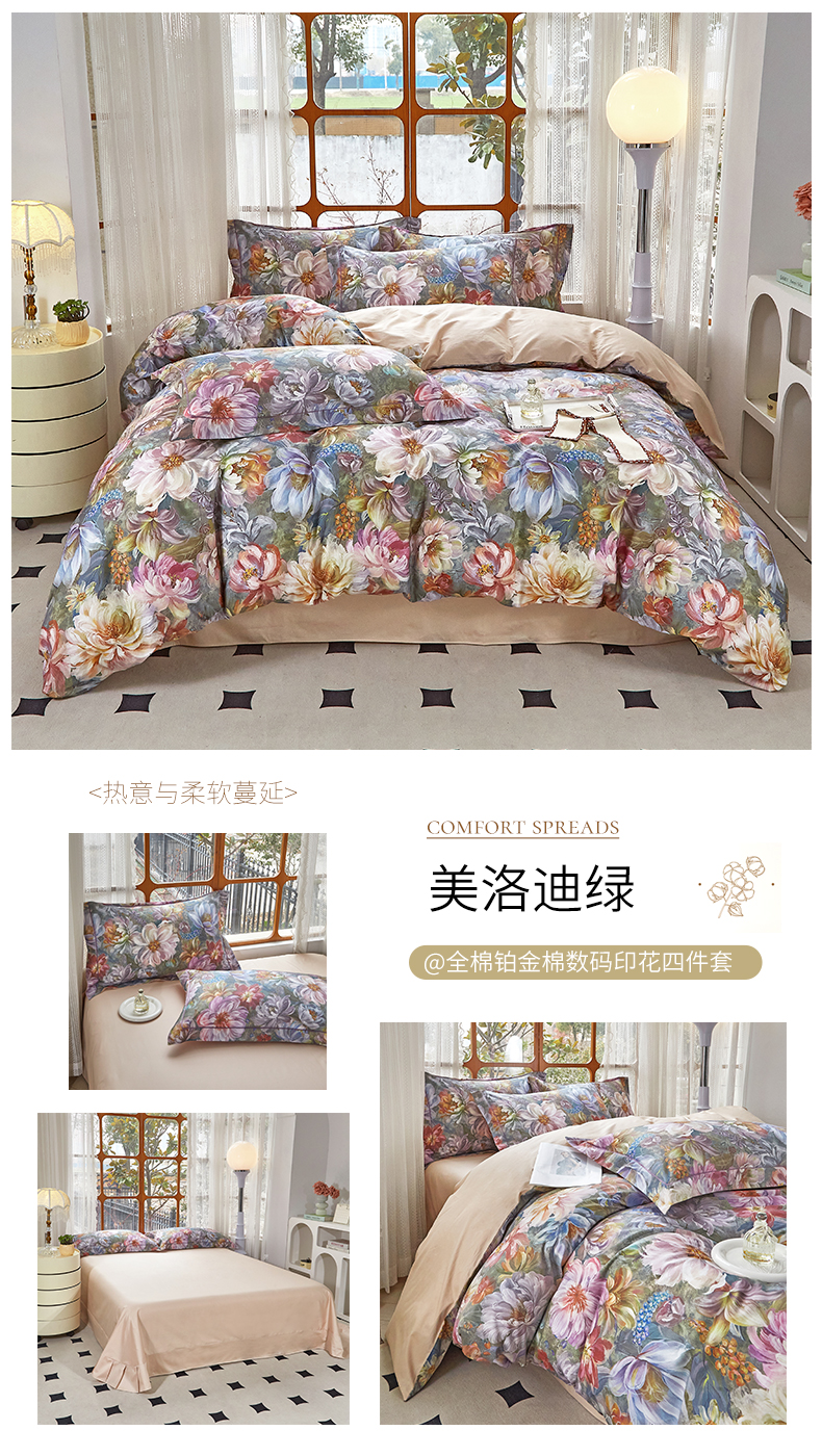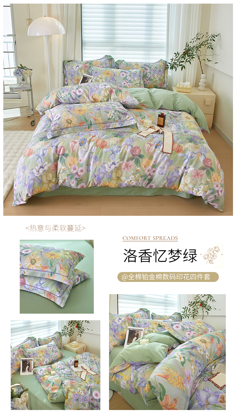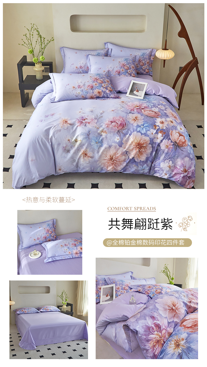 (总)启航家居 2025新款全棉铂金棉数码印花四件套,风香花倦,花的嫁纱,洛香忆梦绿,暮云春树灰,翩若惊鸿粉,普罗旺斯紫,新塞纳舞曲红,新塞纳舞曲紫