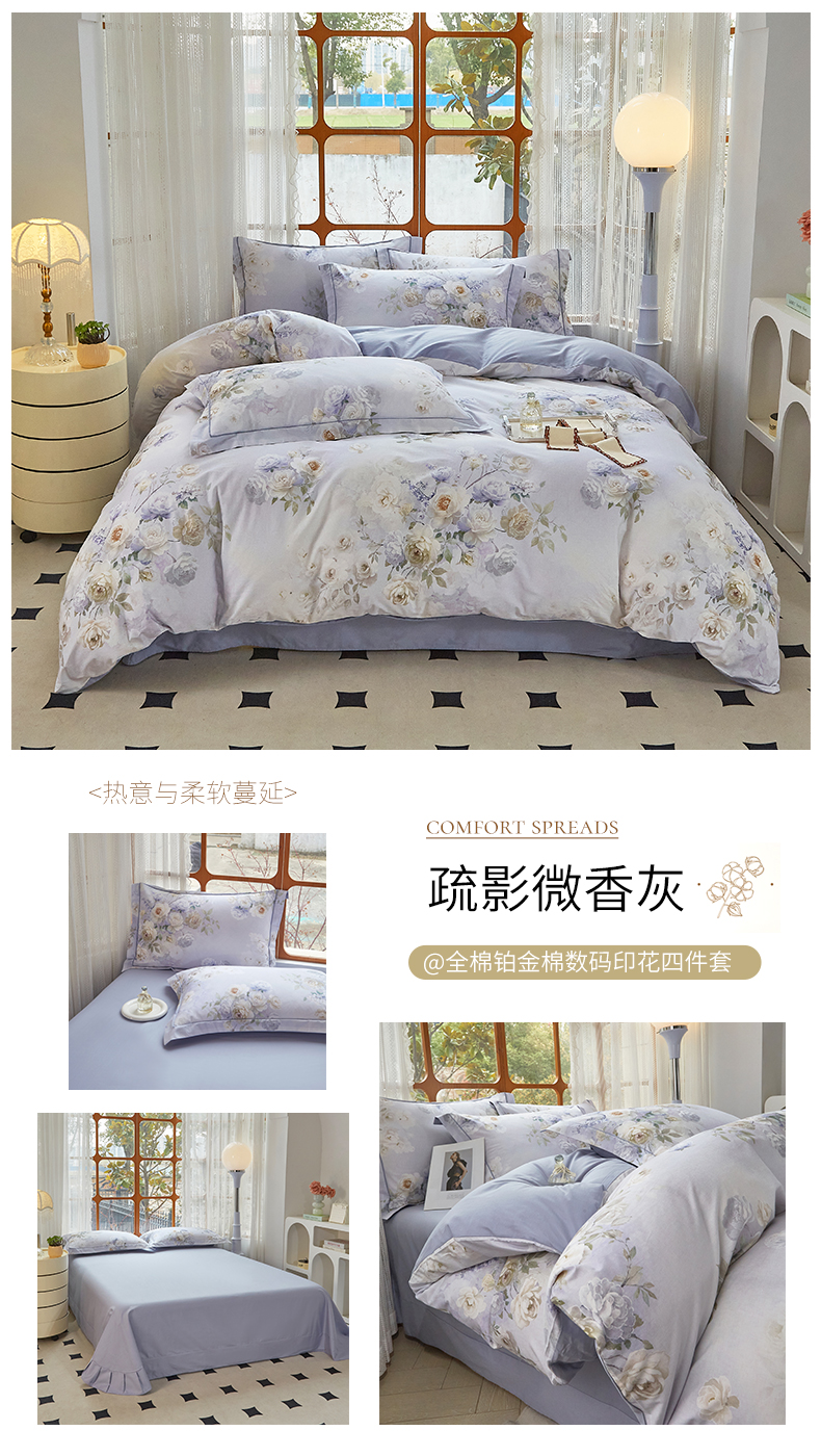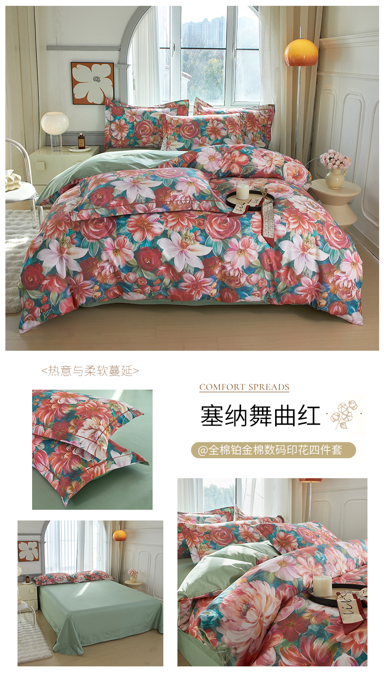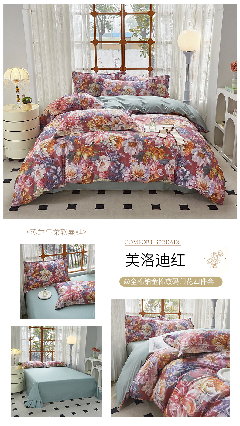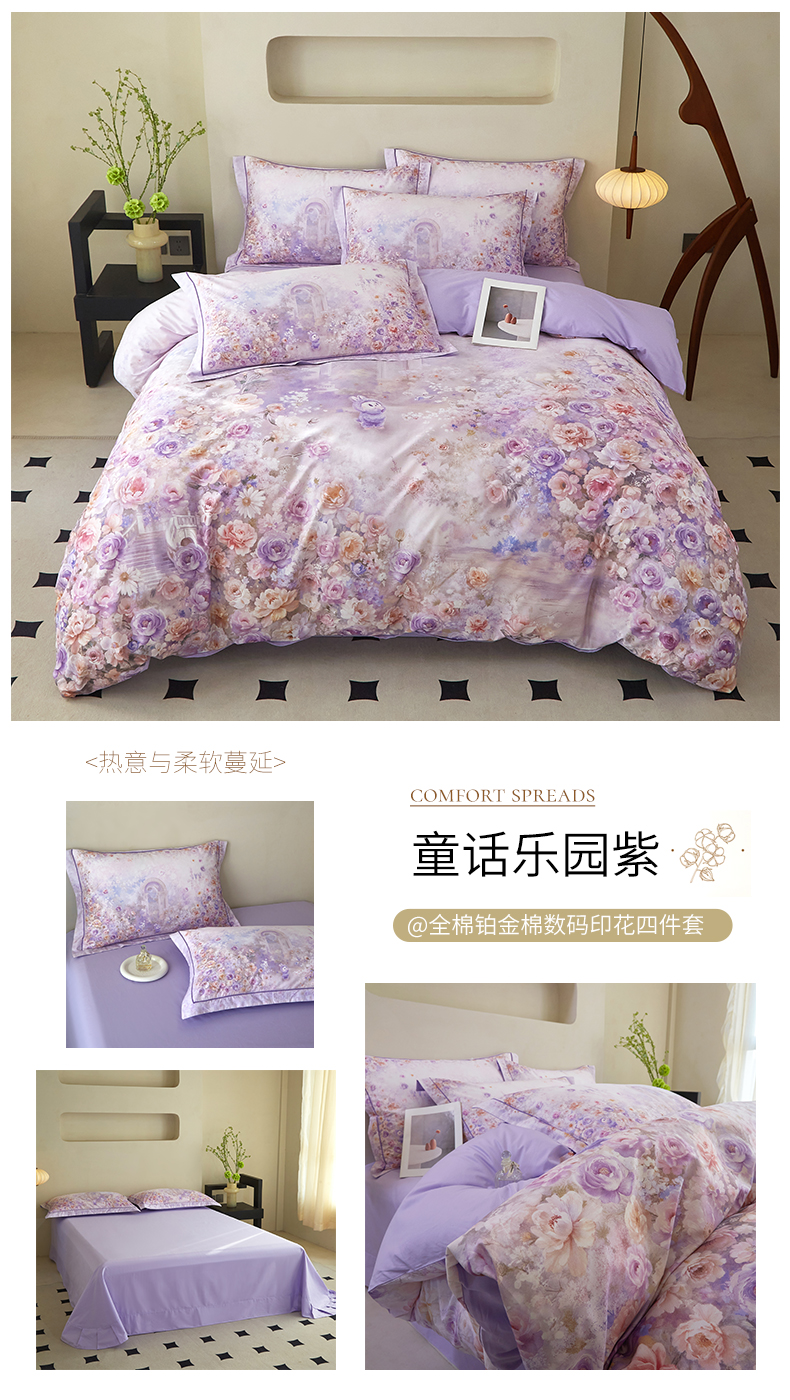 (总)启航家居 2025新款全棉铂金棉数码印花四件套,风香花倦,花的嫁纱,洛香忆梦绿,暮云春树灰,翩若惊鸿粉,普罗旺斯紫,新塞纳舞曲红,新塞纳舞曲紫