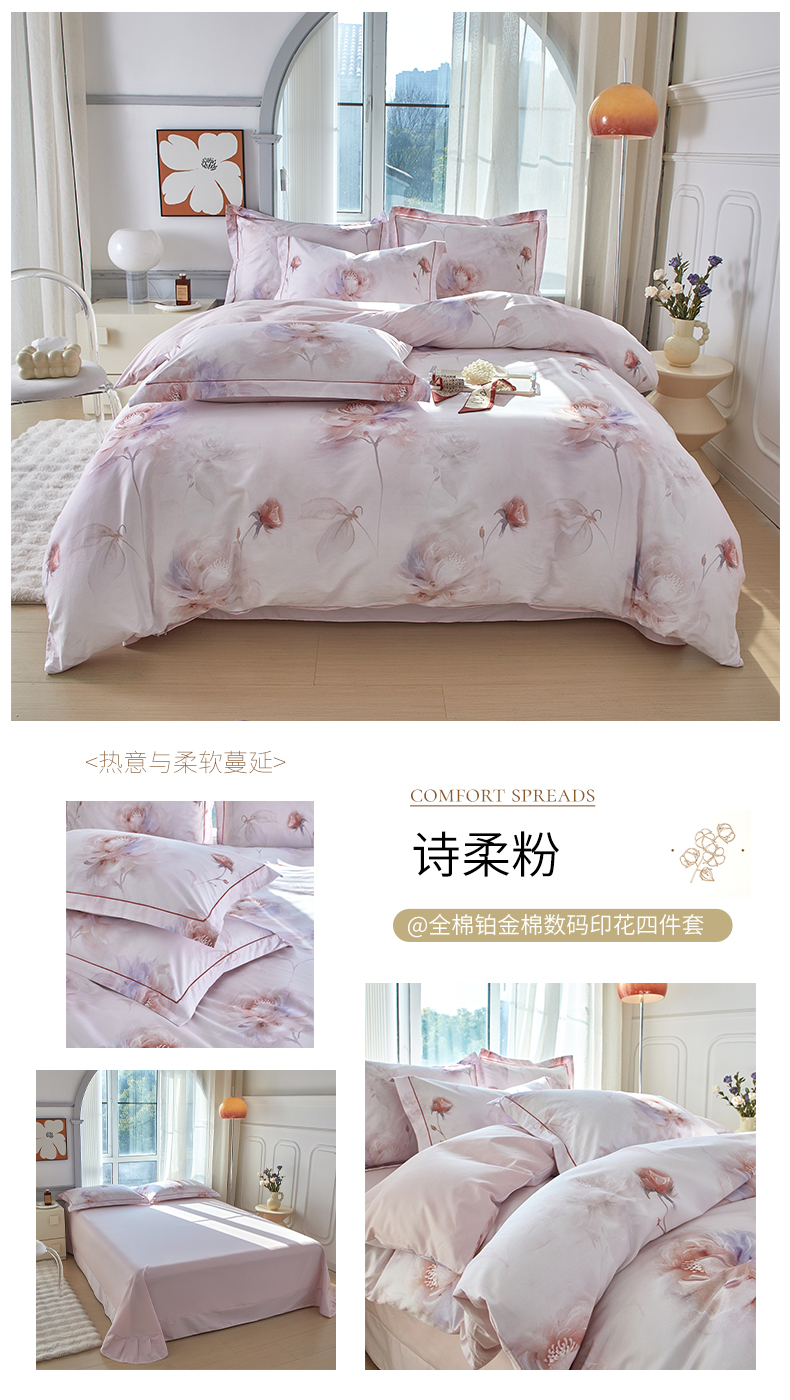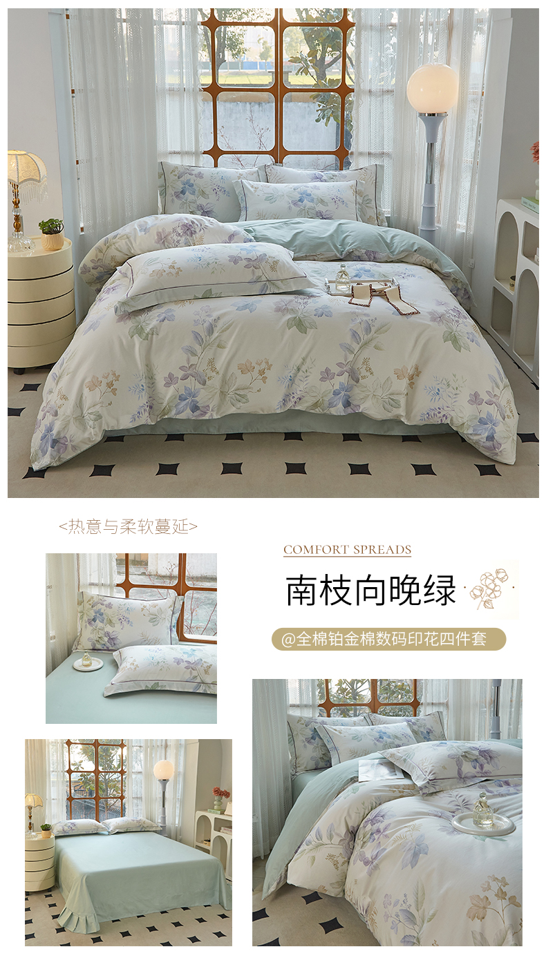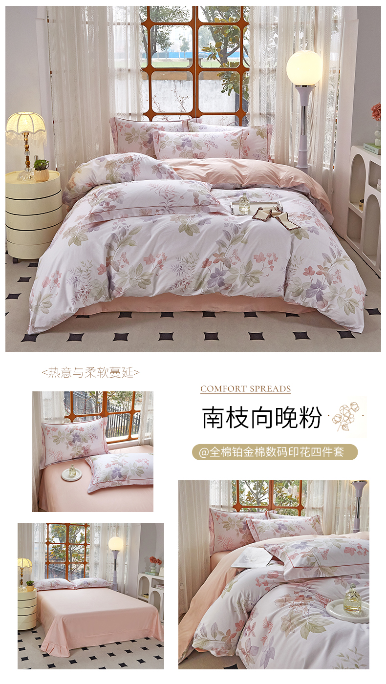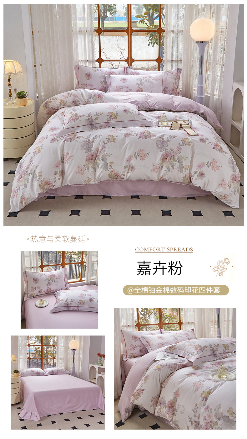 (总)启航家居 2025春夏全棉铂金棉数码印花四件套,暗香凝紫绿,碧澜粉,碧舞绿,步步生莲紫,淡墨香黄,淡墨香兰,飞云之上米,宫墙柳紫,花的旅途桔,花町驼,花胭晚桥粉,花胭晚桥兰,花叶轻慢粉,花意飘香紫,画意枝头粉,简弘灰,娇韵诗兰兰,娇韵诗兰紫,皎洁明媚兰,镜中花粉,镜中花绿,玛丽雅绿,玫瑰佳人粉,梦莱玉,妙语花香桔,墨雨云间兰,凝远桔,凝远绿,泊淮紫,浅梦粉,写意人生粉,微雨山茶紫,云思木想灰,洵美粉,宛如初见兰,田园绿,知否粉,绽放序曲粉,时尚情怀兰,夏花依旧粉,诗柔粉,绽放序曲绿,云中歌兰,润蝶兰,知否兰,臻爱粉,如沁芬芳兰,云中歌紫,清风梦叶粉