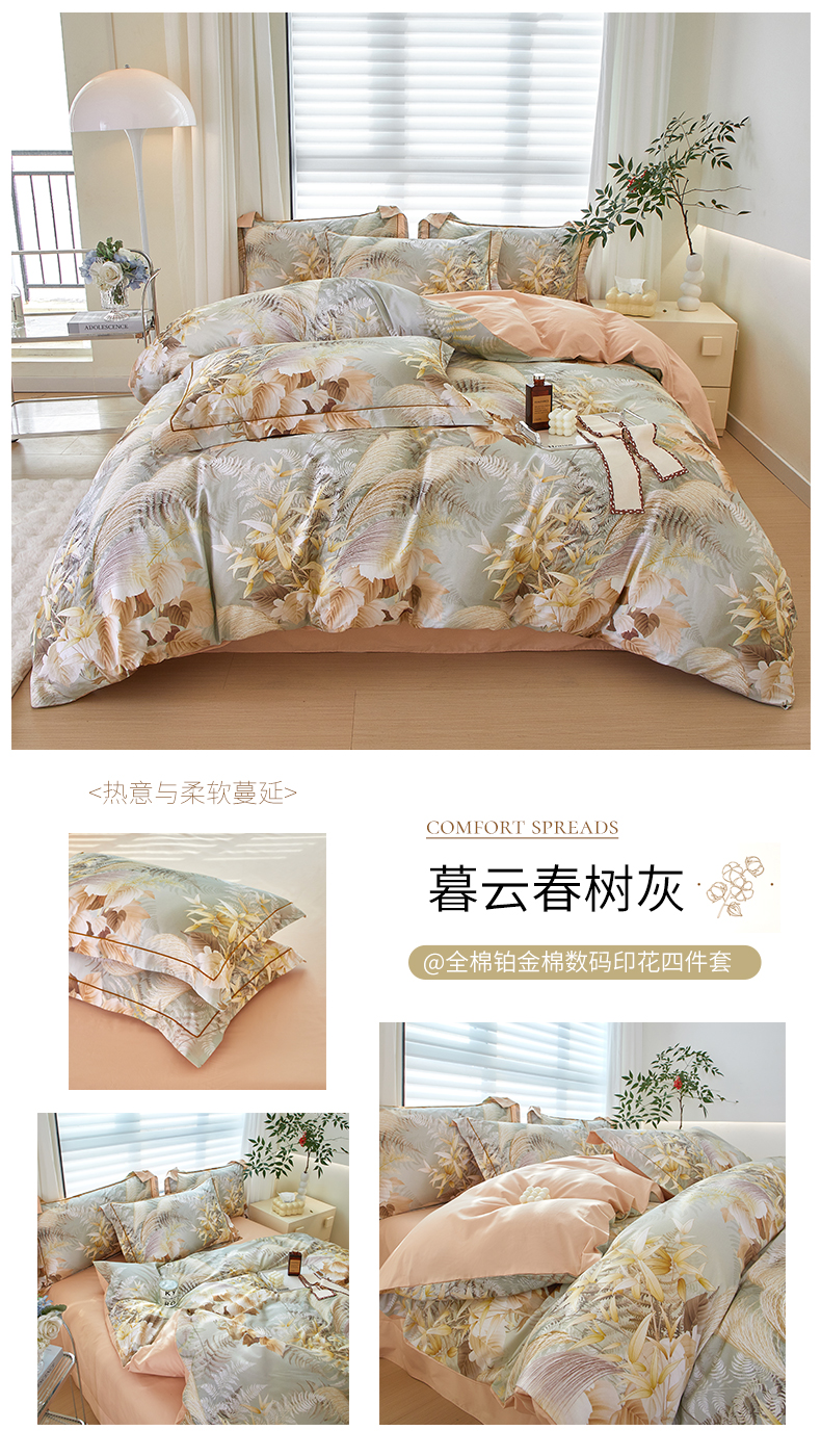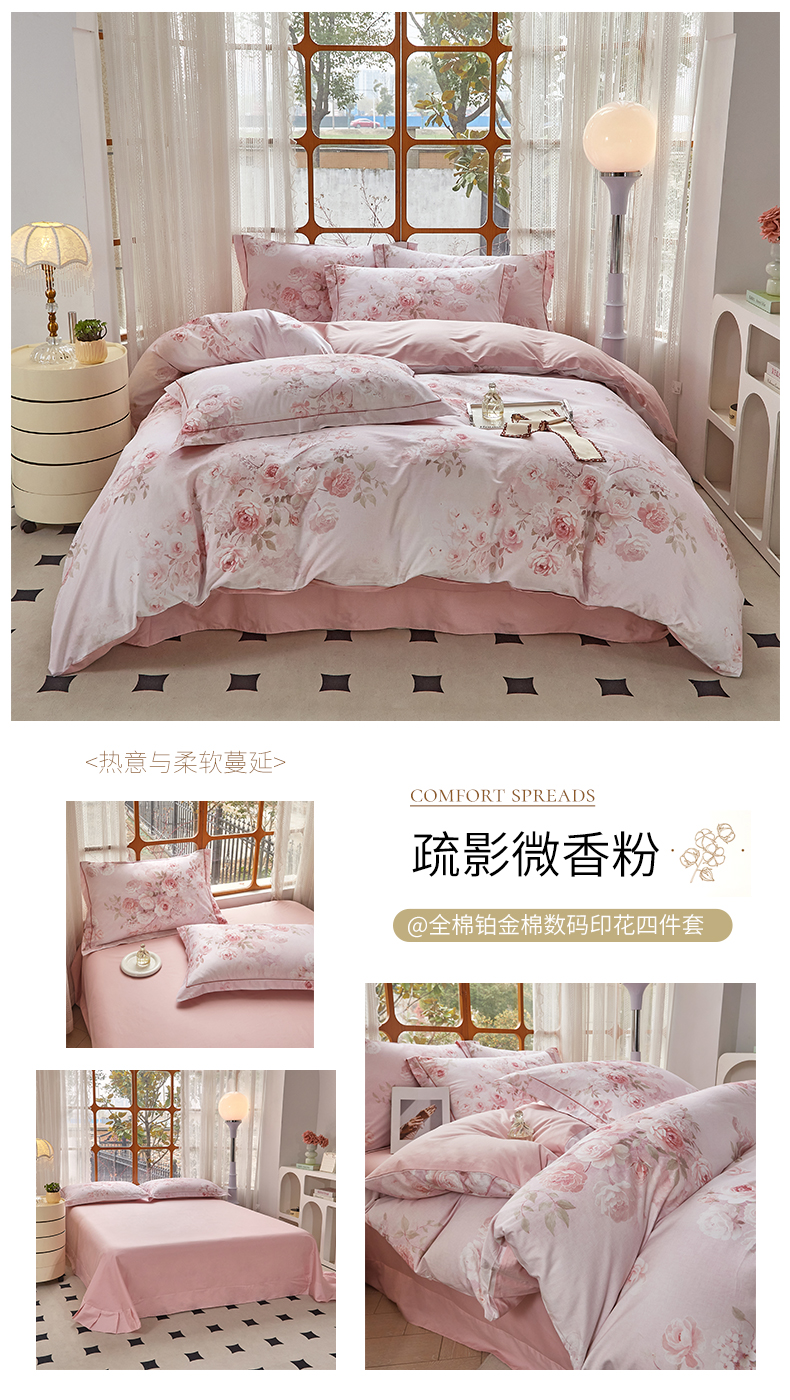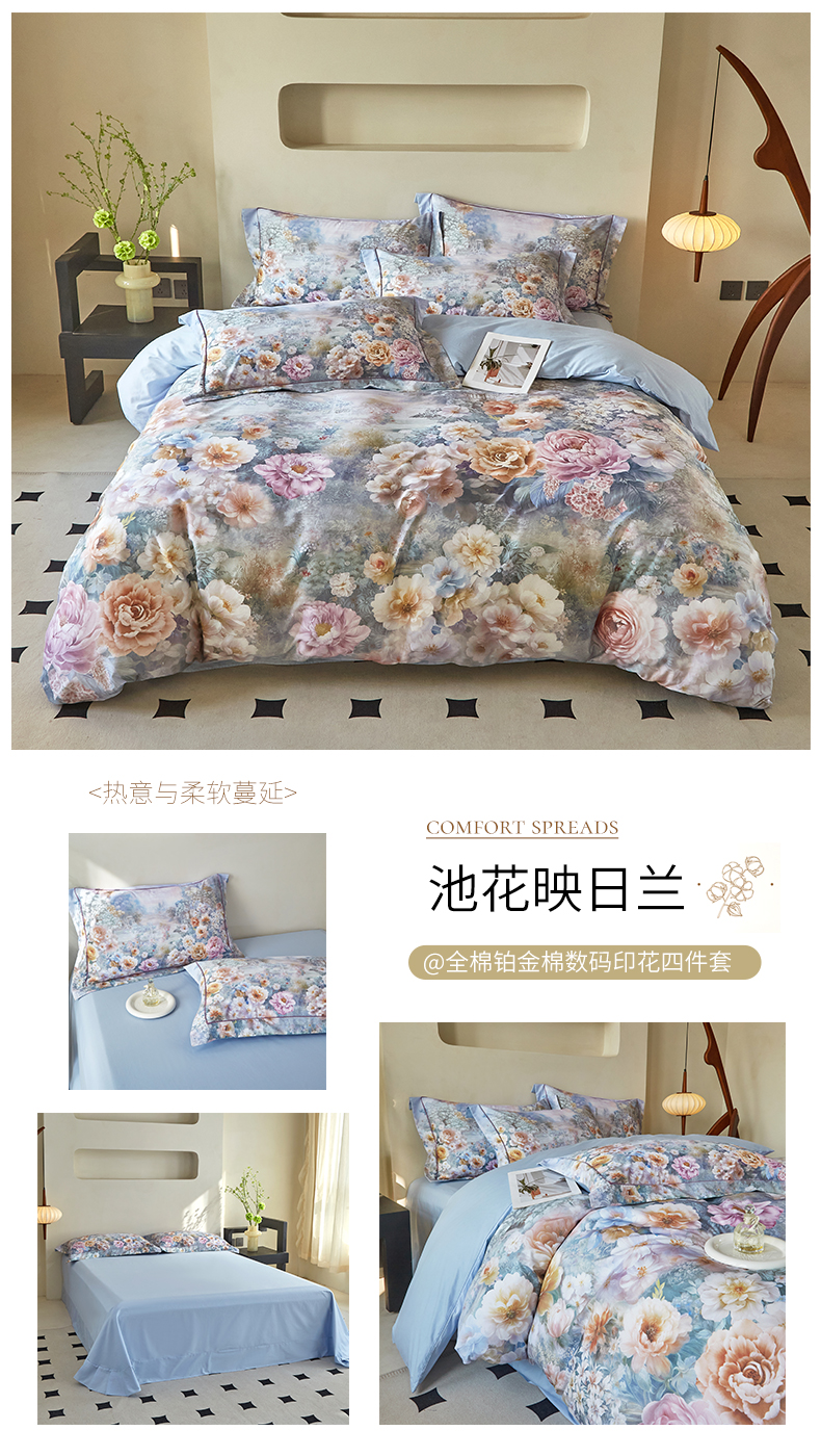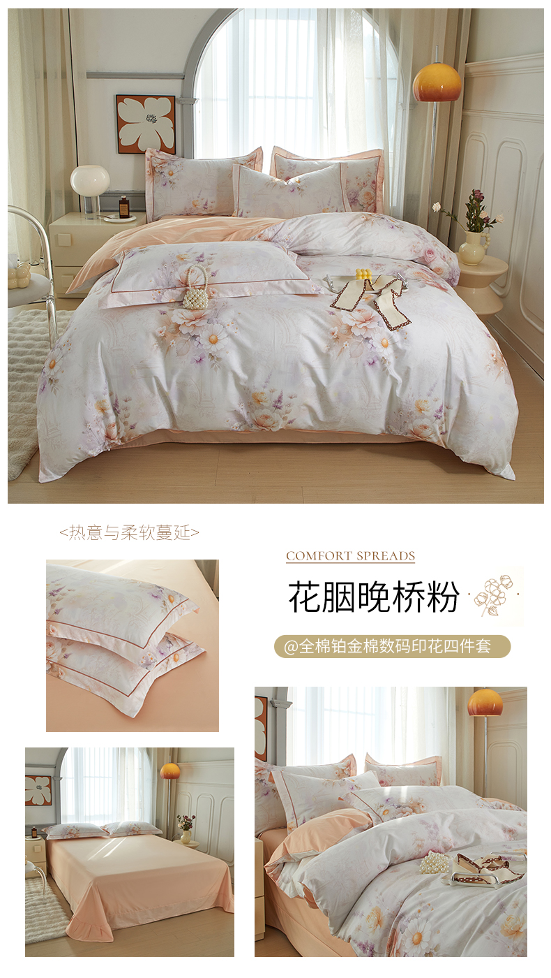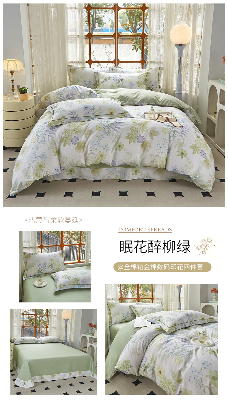 (总)启航家居 2025春夏全棉铂金棉数码印花四件套,暗香凝紫绿,碧澜粉,碧舞绿,步步生莲紫,淡墨香黄,淡墨香兰,飞云之上米,宫墙柳紫,花的旅途桔,花町驼,花胭晚桥粉,花胭晚桥兰,花叶轻慢粉,花意飘香紫,画意枝头粉,简弘灰,娇韵诗兰兰,娇韵诗兰紫,皎洁明媚兰,镜中花粉,镜中花绿,玛丽雅绿,玫瑰佳人粉,梦莱玉,妙语花香桔,墨雨云间兰,凝远桔,凝远绿,泊淮紫,浅梦粉,写意人生粉,微雨山茶紫,云思木想灰,洵美粉,宛如初见兰,田园绿,知否粉,绽放序曲粉,时尚情怀兰,夏花依旧粉,诗柔粉,绽放序曲绿,云中歌兰,润蝶兰,知否兰,臻爱粉,如沁芬芳兰,云中歌紫,清风梦叶粉