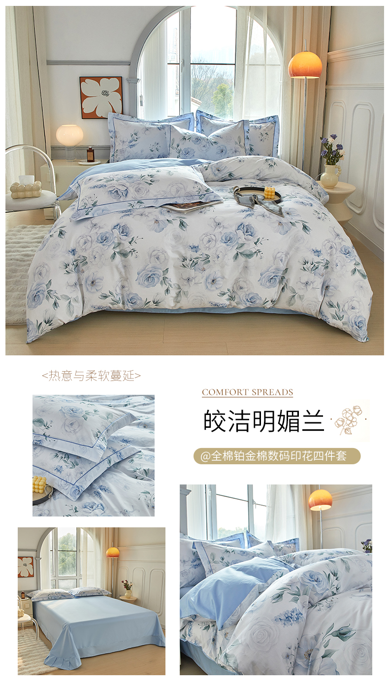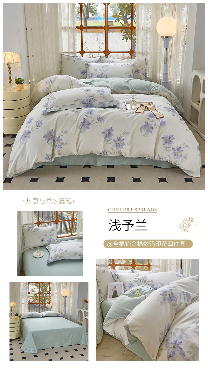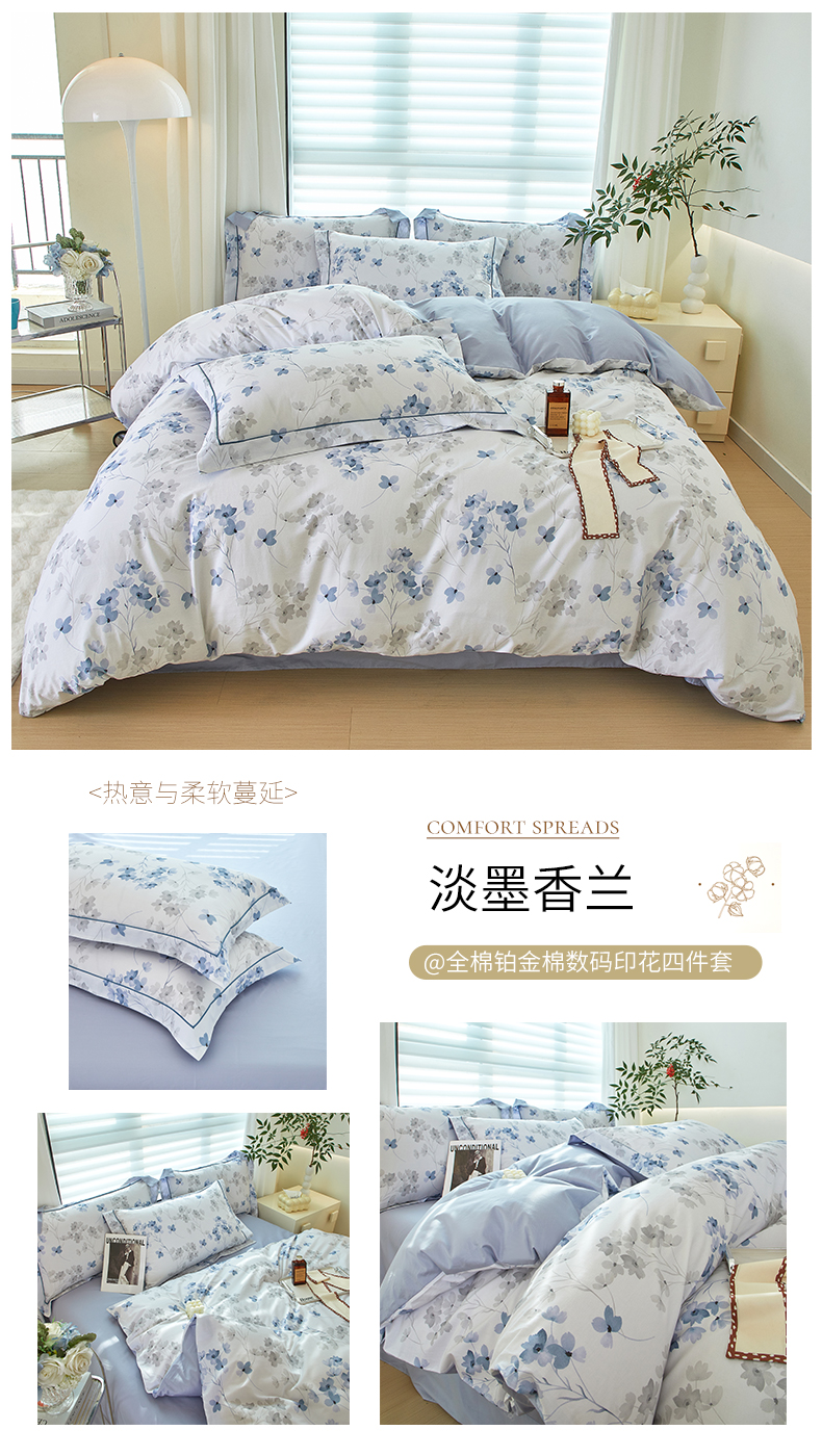 商品名称:启航家居 2026新款全棉铂金棉数码印花四件套 如沁芬芳兰